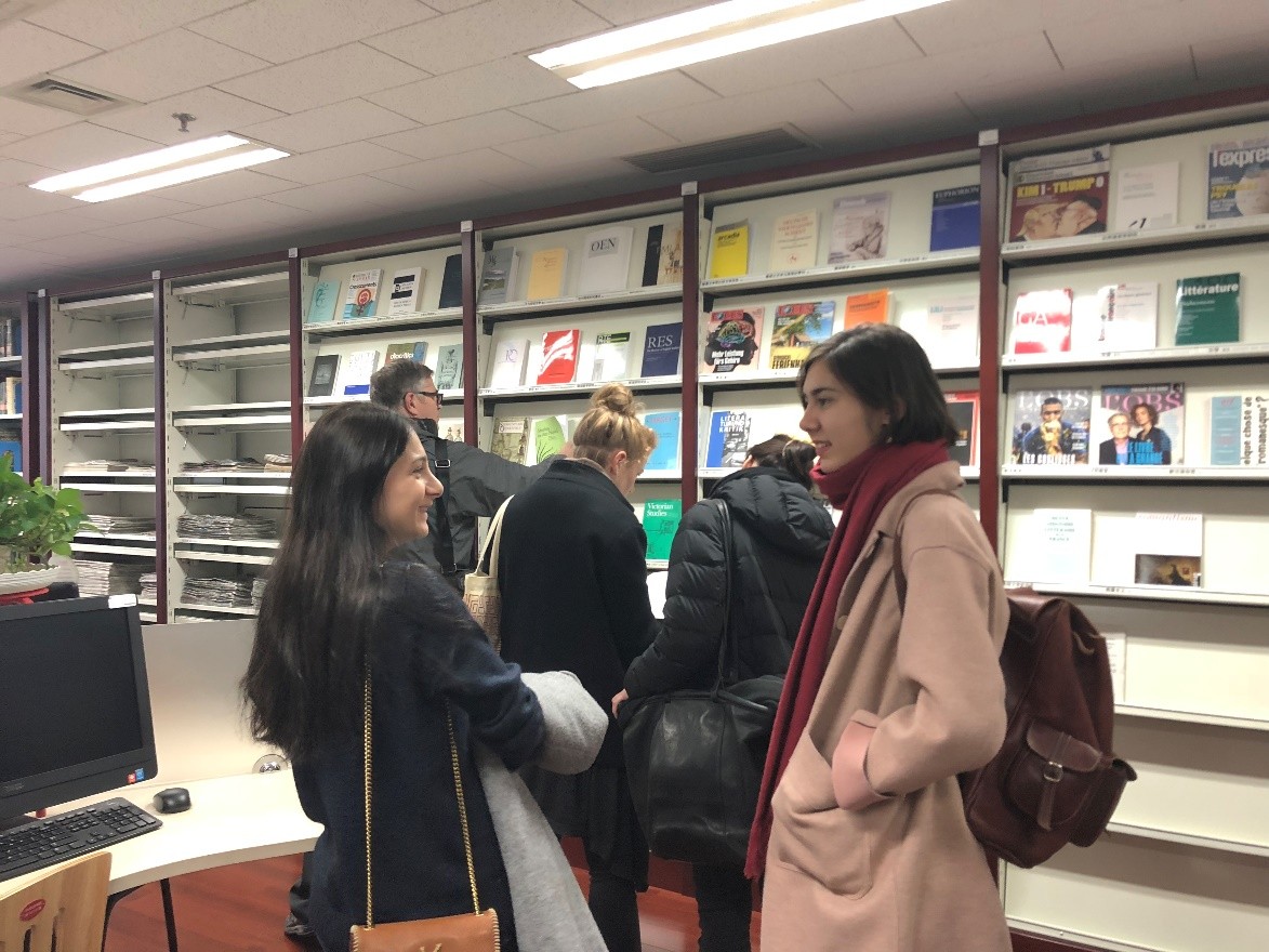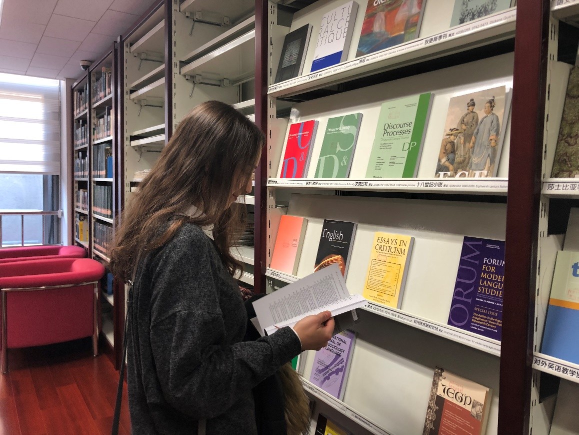 在交流及答疑之后,B体育平台图书分馆馆长张晓雁老师就学院图书分馆的发展历程、藏书量、服务政策等信息进行了详细介绍,并带领外籍教师们参观图书分馆。各位外籍教师就自己教学语种及研究方向的藏书情况、数据库资源向张老师进行了详细咨询。