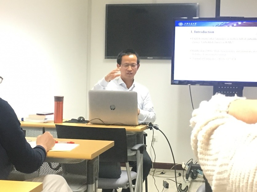 2018年11月23日,上海交通大学杨炳钧教授来B体育平台做语言学沙龙。杨教授的题目为《关于概念语法隐喻的完全体现原则:以名词化为例》(Full realization principle for the identification of ideational grammatical metaphor: nominalization as an example)。本次讲座由语言所副所长高彦梅老师主持。来自语言所和北京其他院校的硕博士研究生和进修教师到场聆听讲座。