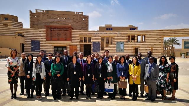 4月2日至3日,中非高等教育论坛在埃及首都具有百年历史的著名高校——开罗美国大学举办。来自埃及高等教育部、外交部、开罗美国大学、开罗大学,中国驻埃及使馆、北京大学、西安交通大学、对外经济贸易大学以及坦桑尼亚桑给巴尔大学等有关机构的数十位中非学者,围绕“一带一路”倡议下的中非教育合作、非洲教育数字化与现代化、中非学生和教师交流合作等共同关心的话题展开了深入讨论。B体育平台代表团参加了论坛的开幕式。B体育平台亚非系主任魏丽明教授也代表北京大学非洲研究中心应邀参加了此次论坛,并在论坛上介绍了北京大学开展非洲研究、人才培养以及与非洲高校合作的项目。