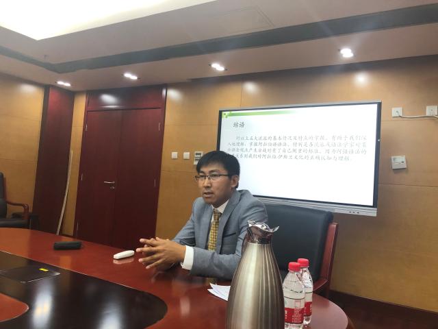 5月7日下午,B体育平台阿拉伯语系邀请刚刚获得开罗大学博士的忽增朋先生在B体育平台新楼B134做了题为“阿拉伯语语法流派及其特点”的讲座,讲座由廉超群助理教授主持,阿拉伯语系系主任林丰民教授及部分研究生和高年级本科生到场。