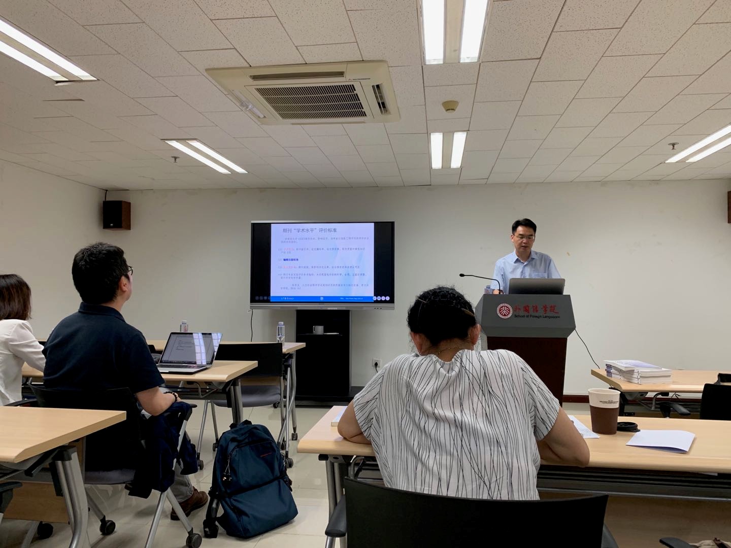 2019年6月14日下午,北京大学社会科学部和《语言学研究》编辑部共同主办了 “学术期刊的出版规范与编审实践”学术培训讲座。本次讲座邀请了《中国外语》副主编、编辑部主任常少华老师。讲座由语言所所长高一虹教授主持,《语言学研究》编辑部老师及校内其他集刊编辑部的老师们参加了讲座。