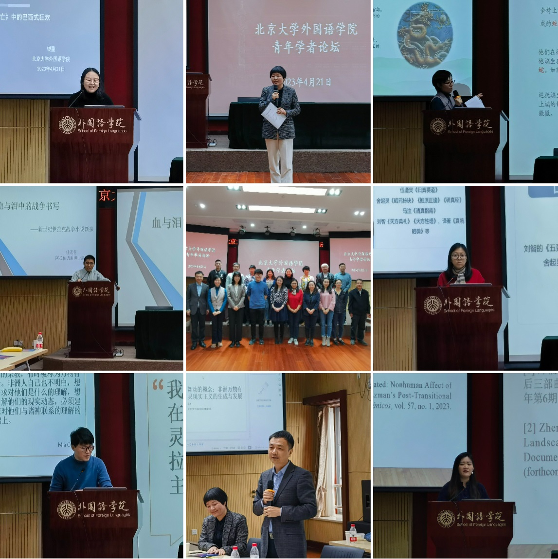论坛上午场由日语系孙建军长聘副教授主持,闵雪飞、冯硕、宋文志、阮晋逸、李睿、于施洋、刘雪瑽分别以《<天音>、象征与帝国想象——论佩索阿的神话诗学民族主义建构》《Quantifier scope ambiguity and grammatical morphemes in L3 acquisition of Korean》《本土问题与外来范式——韩国的国家安全研究》《莲冠鹤氅与草窟书斋——北宋佛教壁画对外道形象的构建》《“一本正经的胡说八道”——中德媒体关于ChatGPT报道的语言学话语分析》《“限制番薯入华”的另一面——16世纪西班牙的海外管理和知识生产》《科学与妖怪——学术史视角的井上圆了妖怪学》为题进行发言。