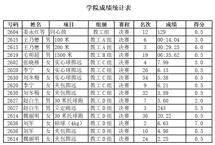 在全院教职工团结拼搏、永不言弃的努力下,B体育平台总共获得36.5分的比赛成绩,在全校参赛单位中积分排名第27。