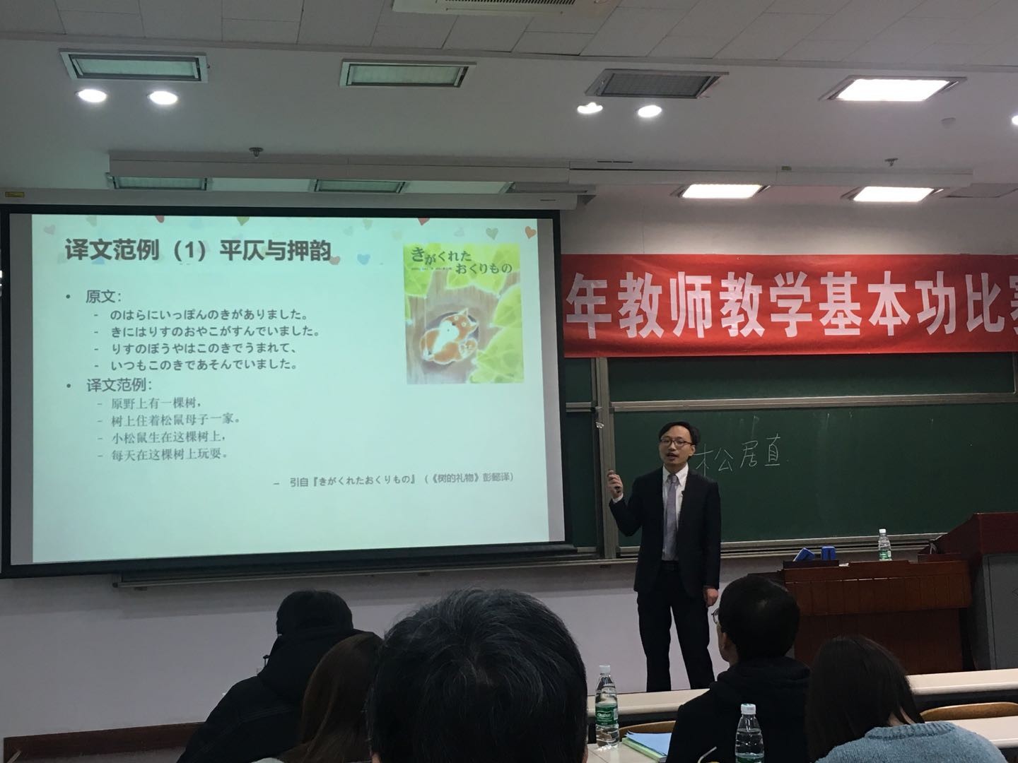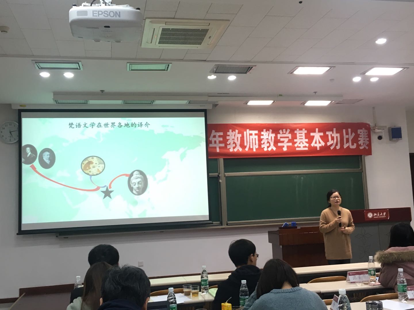 2018年12月1日,北京大学第十八届青年教师教学基本功大赛在理教201教室如期举行。此次教学基本功大赛分为文科、理科两个组别进行比赛。文科组有来自全校15个文科院系的22位老师参赛。B体育平台有英语系李宛霖老师、日语系岳远坤老师和南亚系范晶晶老师参加了此次比赛。经过一天的紧张角逐,李宛霖老师的《改编——关于变化的争议》课程展示获得文科组第二名,岳远坤老师《笔译专家指导儿童绘本翻译的原则和方法》课程展示和范晶晶老师的《缘——中印文学交流的个案分析》课程展示获得优秀奖,B体育平台获得优秀组织奖。