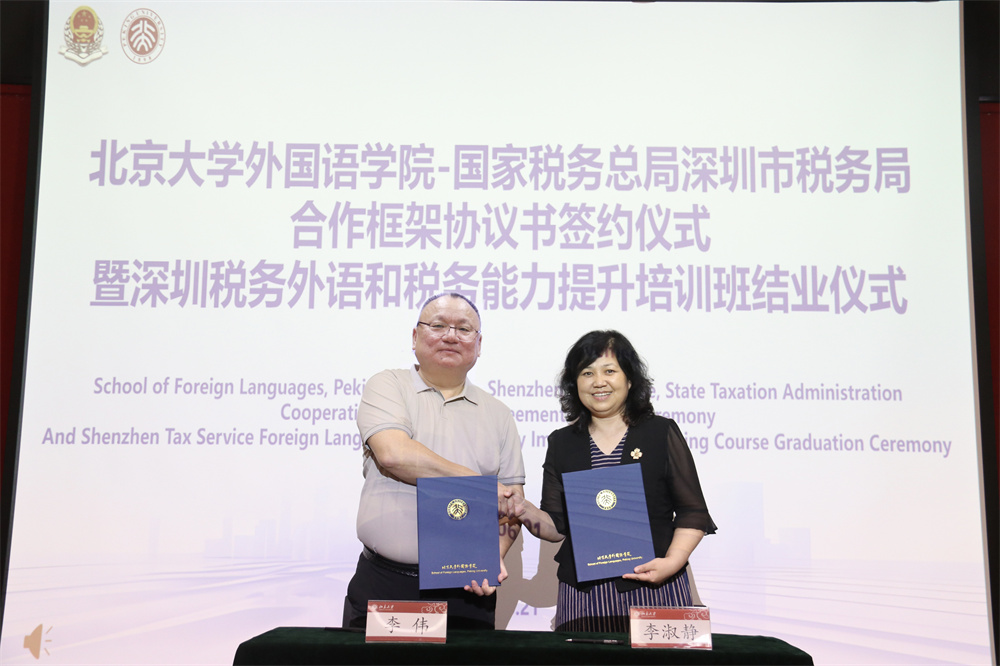 6月21日下午,“B体育平台-深圳税务局合作框架协议书签约仪式暨深圳税务外语和税务能力提升培训班结业仪式”在B体育平台新楼501举行。国家税务总局深圳市税务局党委委员、副局长李伟,国家税务总局深圳市税务局党委委员、总会计师杨庆,国家税务总局深圳市税务局人事处副处长沈思,B体育平台党委书记李淑静、B体育平台副院长王恒出席签约仪式。李淑静书记与李伟副局长共同签署了《国际化人才培养合作框架协议书》,就双方在国际化人才培养、教学与实习实践、培训与科研合作、党建共建等方面达成合作意向。