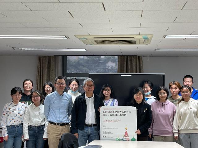 评议环节,王浩教授高度评价徐坡岭研究员对于中俄经贸合作议题的精准分析,并鼓励同学们在国别和区域研究中尝试结合经济学理论视角,突破外语学科壁垒。随后,在场师生就欧亚经济联盟发展、俄罗斯进口替代战略等问题与主讲嘉宾进行了深入交流与热烈讨论。