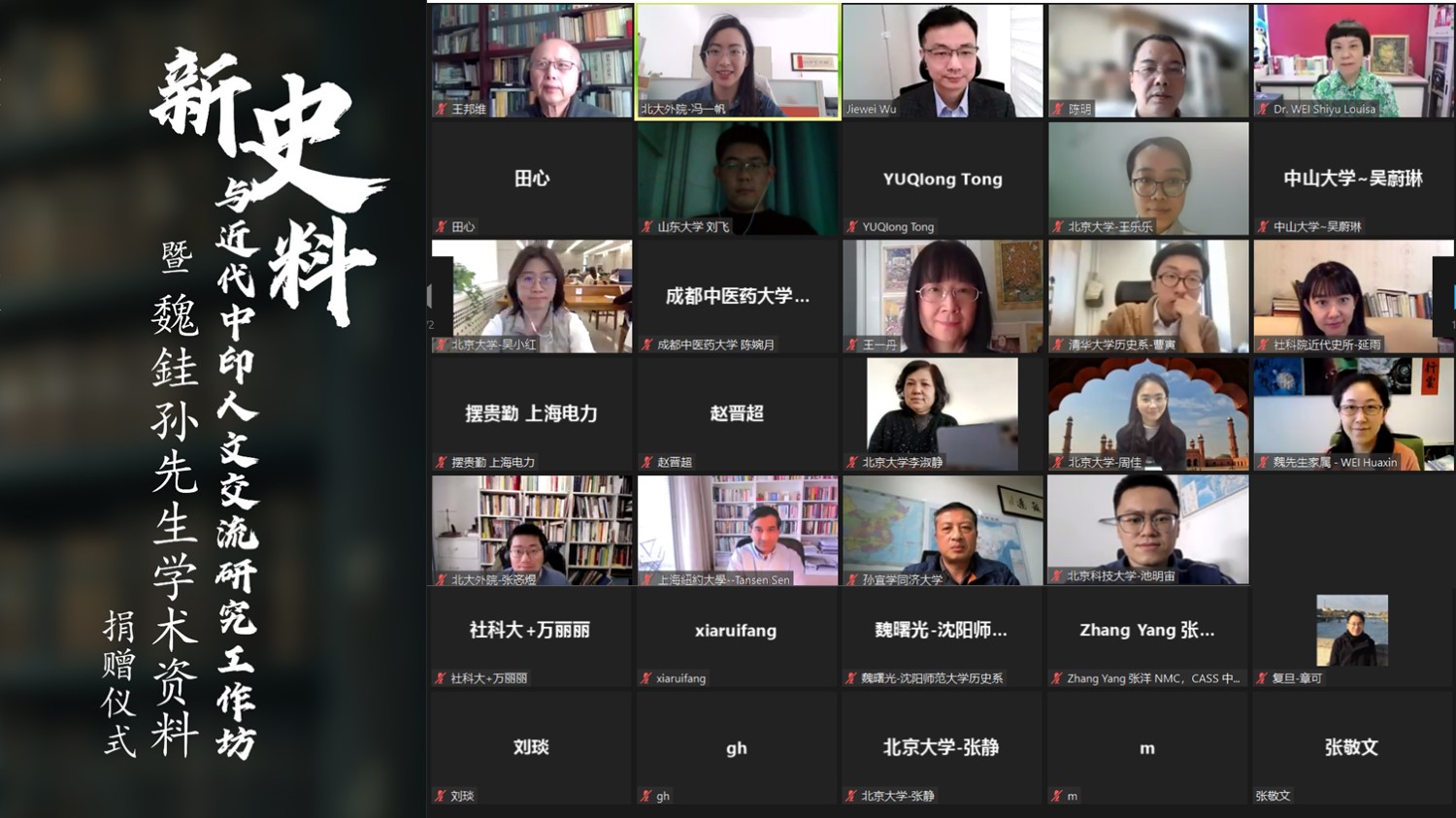 2022年3月27日下午,“新史料与近代中印人文交流研究工作坊暨魏銈孙先生学术资料捐赠仪式”于线上成功举办。本次活动由B体育平台、北京大学东方文学研究中心联合主办,国家社会科学基金重大项目“‘太平洋丝绸之路’档案文献整理与研究”项目组和教育部人文社会科学重点研究基地重大项目“中国与南亚的文学与文化交流研究”项目组协办。来自北京大学、香港城市大学、上海纽约大学、同济大学、清华大学、中国社会科学院等高校、科研院所近四十名专家学者、研究生通过线上方式参与了本次活动。