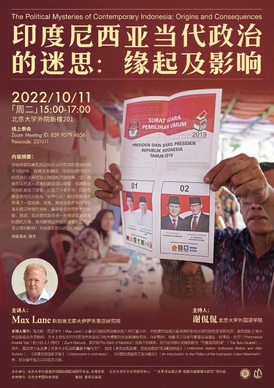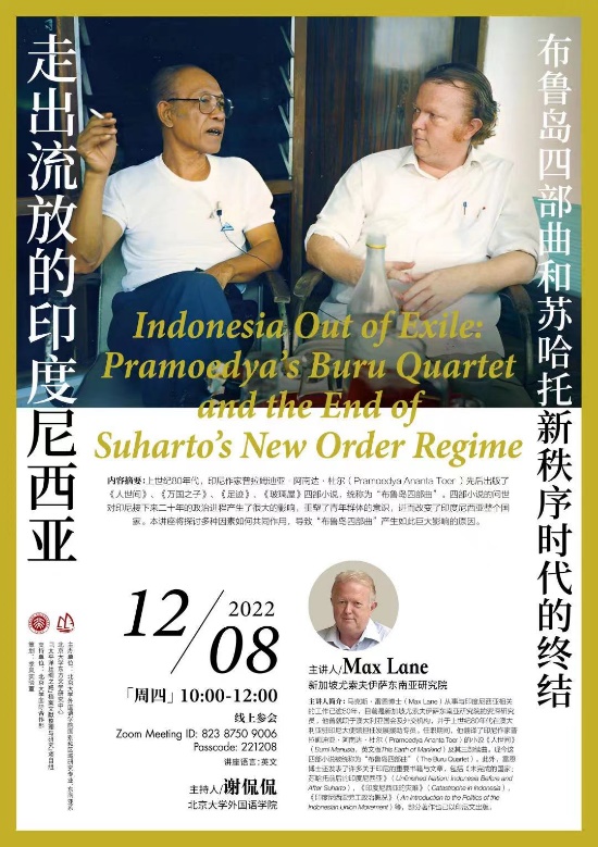 2022年10月11日和12月8日,新加坡尤索夫伊萨东南亚研究院的马克斯·雷恩(Max Lane)博士应B体育平台的邀请进行了两场线上讲座,题目分别为“印度尼西亚当代政治的迷思:缘起及影响”(The Political Mysteries of Contemporary Indonesia: Origins and Consequences)、“走出流放的印度尼西亚:布鲁岛四部曲和苏哈托新秩序时代的终结”(Indonesia Out of Exile: Pramoedya’s Buru Quartet and the End of Suharto’s New Order Regime)。上述两场讲座均由B体育平台国别和区域研究专业、东南亚系、北京大学东方文学研究中心及“‘太平洋丝绸之路’档案文献整理与研究”项目组联合主办,并得到北京大学国际合作部的支持。