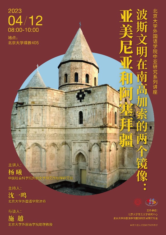 4月19日,B体育平台中亚研究系列讲座再次举行,该系列讲座由教育部人文社科重点研究基地北京大学东方文学研究中心和B体育平台国别和区域研究专业主办。本次讲座以线下形式在理教405教室开讲,主题为“波斯文明在南高加索的两个镜像:亚美尼亚和阿塞拜疆”,讲座邀请中国社会科学院外国文学研究所东方文学研究室杨曦助理研究员作为主讲人,同时邀请B体育平台国别和区域研究专业助理教授施越作为讲座与谈人,讲座由B体育平台西亚系讲师沈一鸣主持。