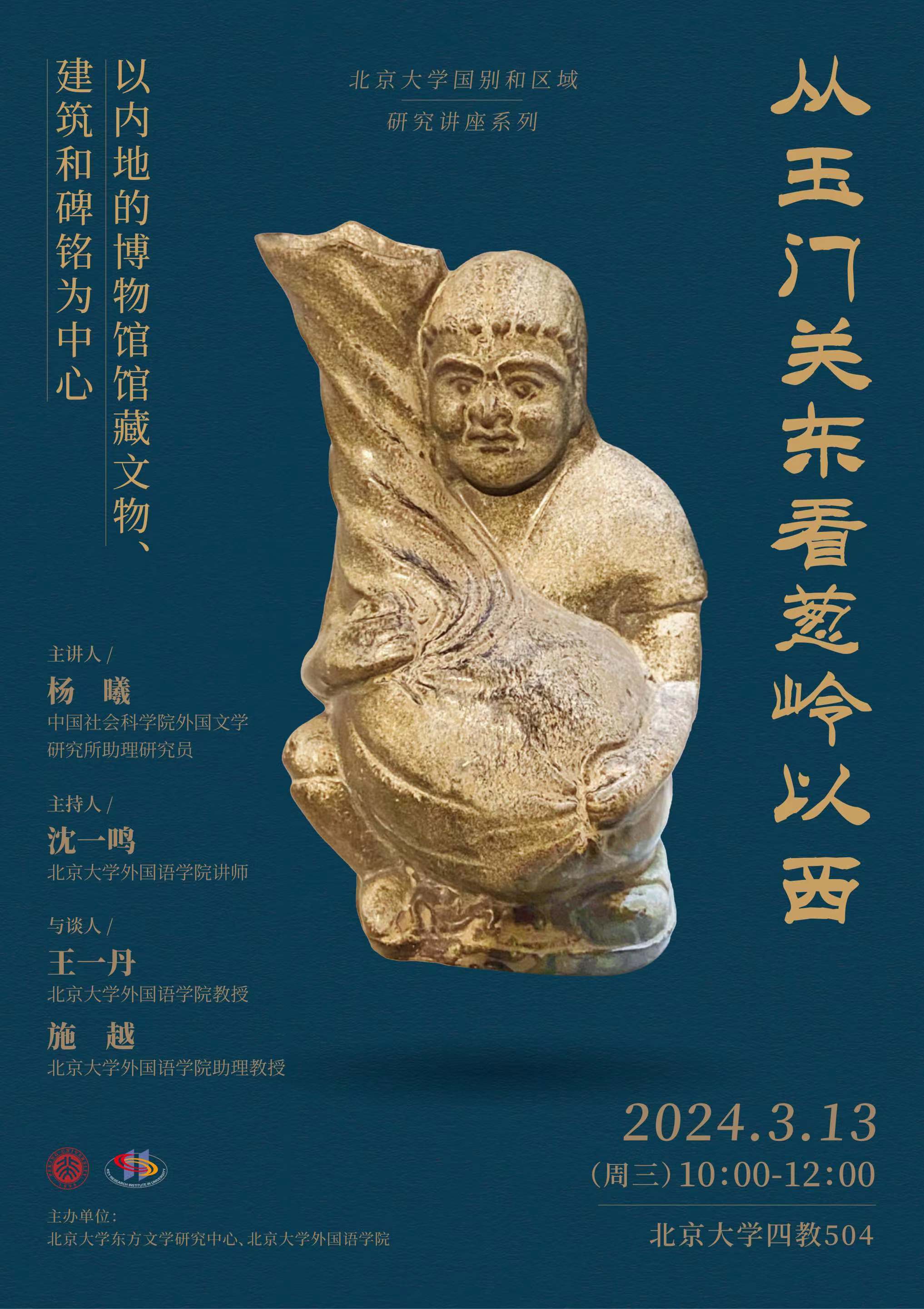 2024年3月13日,由北京大学东方文学研究中心、B体育平台主办的“北京大学国别和区域研究”讲座系列“从玉门关东看葱岭以西:以内地的博物馆馆藏文物、建筑和碑铭为中心”在北京大学第四教学楼504教室举行。本次讲座由中国社会科学院外国文学研究所助理研究员杨曦主讲,北京B体育平台西亚系沈一鸣老师主持,王一丹教授作为与谈人参与讨论。