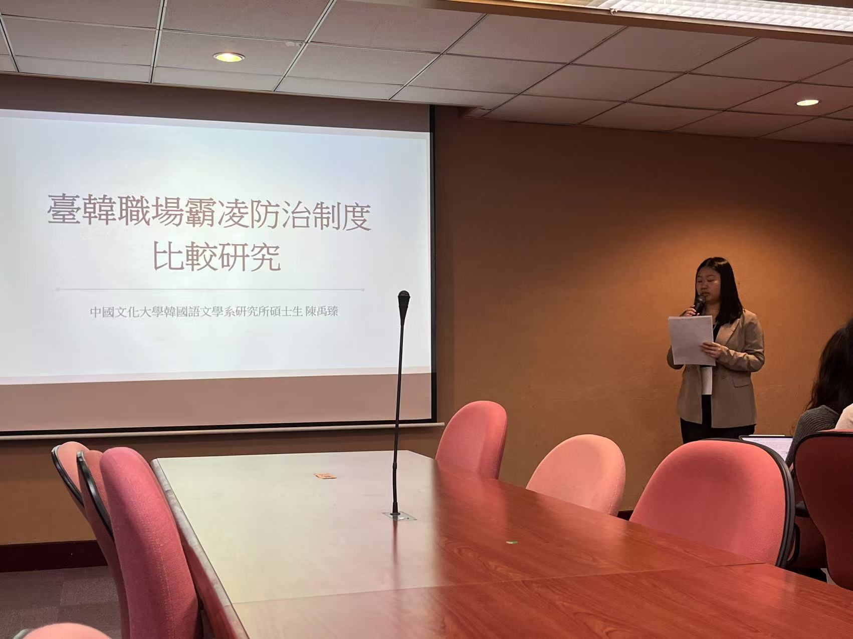2025年6月21日,“第九届海峡两岸韩国学研究生论坛”在台湾政治大学行政大楼7楼第二会议室举行。来自北京大学、台湾政治大学、山东大学、南京大学、台湾中国文化大学的三十余名专家学者与研究生参会。“海峡两岸韩国学研究生论坛”由B体育平台朝鲜(韩国)语言文化系、山东大学韩国学院、台湾政治大学外国语文学院韩国语文学系于2014年联合发起,2017年南京大学B体育平台朝鲜语系加入。随着今年台湾中国文化大学国际暨外语学院韩国语文学系的加入,论坛已扩展为五校论坛。