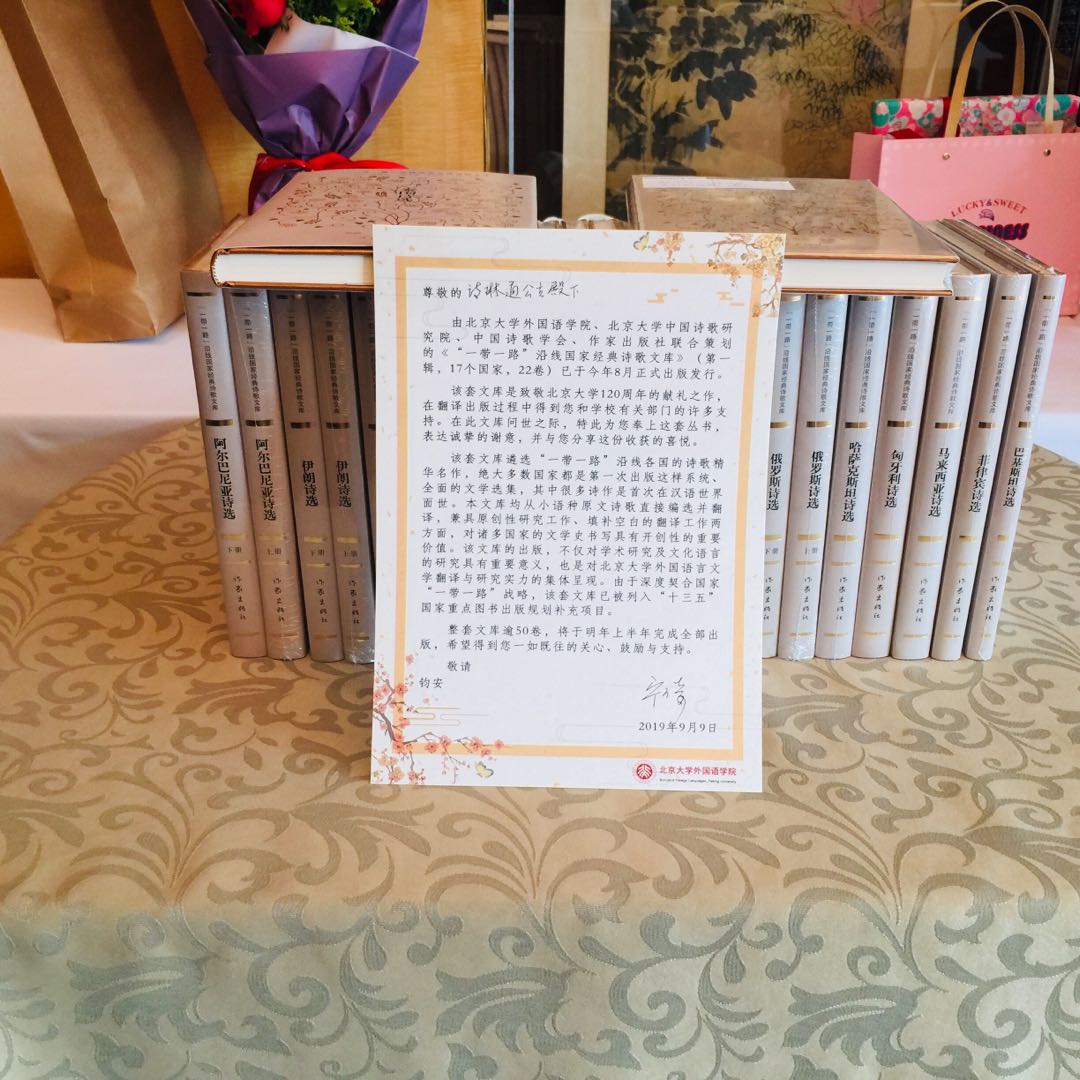 2019年9月29日下午,泰王国诗琳通公主在参加完中华人民共和国国家勋章和国家荣誉称号颁授仪式之后,前往北京丽思卡尔顿酒店宴请前任中国驻泰大使和公主的汉语教师代表。我国泰语界著名专家、翻译家、诗琳通讲席教授裴晓睿受邀参加了此次宴请活动,并作为译者之一向公主赠送了由北大B体育平台、北大中国诗歌研究院和作家出版社联合策划出版的《“一带一路”沿线国家经典诗歌文库》(第一辑)一套。