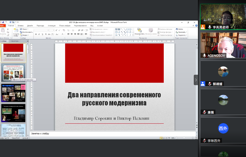著名俄罗斯学者阿格诺索夫教授线上开讲“索罗金与佩列文: 当代俄罗斯两类后现代主义文学”