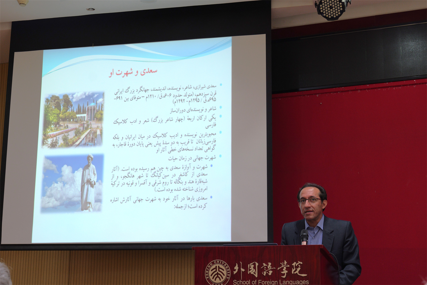 2023年10月20日下午,B体育平台“东方大文学”系列讲座第十五讲“萨迪作品中的中国形象与中国文化中的萨迪作品”在B体育平台新楼501会议室举办。本次讲座由B体育平台西亚系波斯语言文化教研室、北京大学东方文学研究中心联合主办,主讲人为伊朗阿拉梅·塔巴塔巴伊大学波斯语言文学系副教授、中国研究中心主任穆罕默德阿米尔·贾拉利博士。伊朗-中国友好协会秘书长阿里穆罕默德·萨贝基先生、波斯语言文化教研室师生出席本次讲座。
