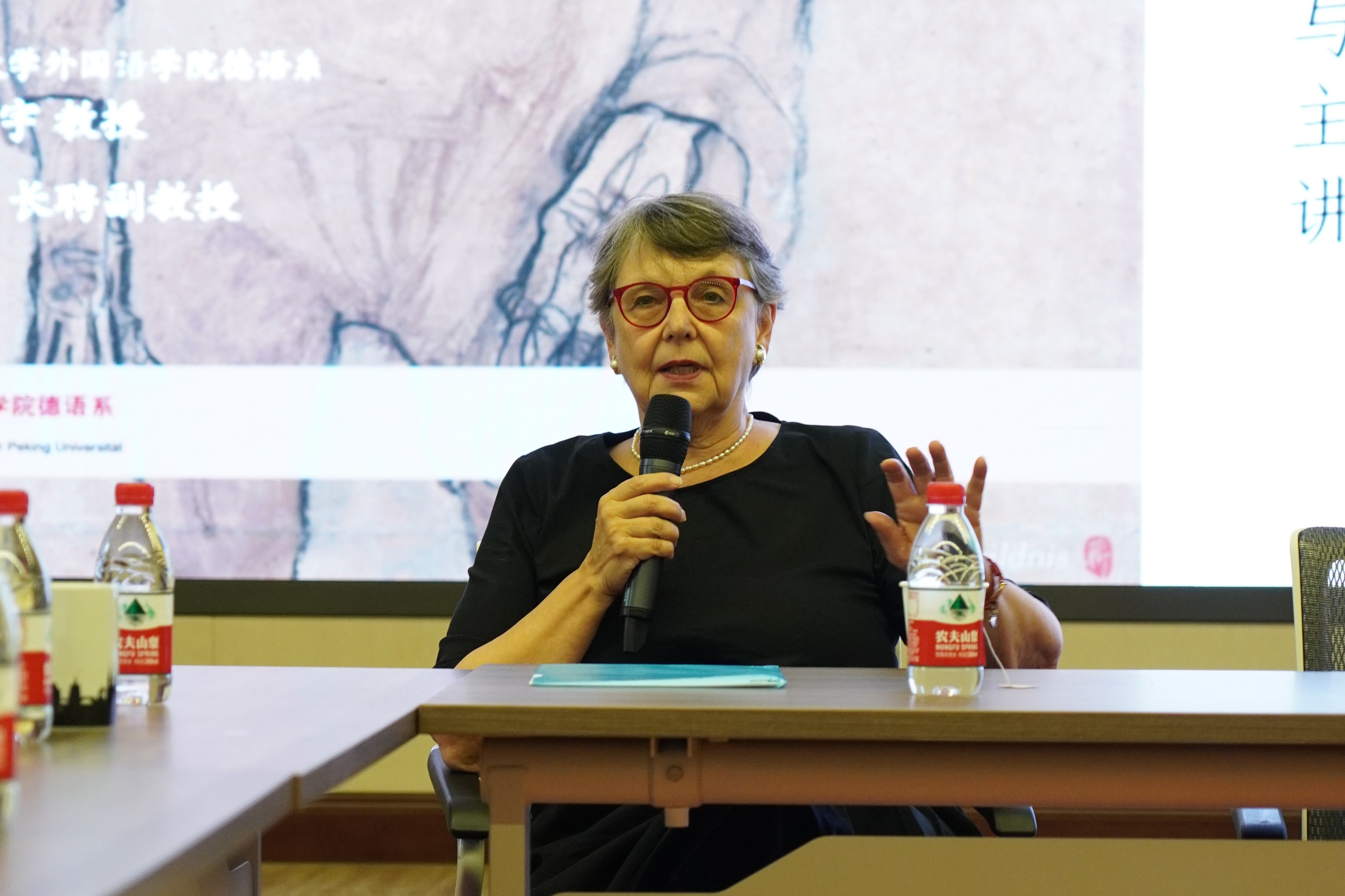 9月18日下午,维也纳档案图书馆前馆长、维也纳历史学会前会长马琳达博士(Dr. Klaralinda Ma-Kircher)应邀在民主楼208会议室做题为“抗议-弃念-韧性:对过去四十年奥地利文学的回顾”的讲座。该讲座由B体育平台德语系主任、长聘副教授胡蔚老师担任主持,北京大学德国研究中心主任、德语系教授黄燎宇老师担任与谈人,B体育平台德语系副主任、助理教授毛明超老师担任翻译。北京大学前辈校友、各界同好以及德语系学生也积极参加了此次活动,共有60余人参会。
