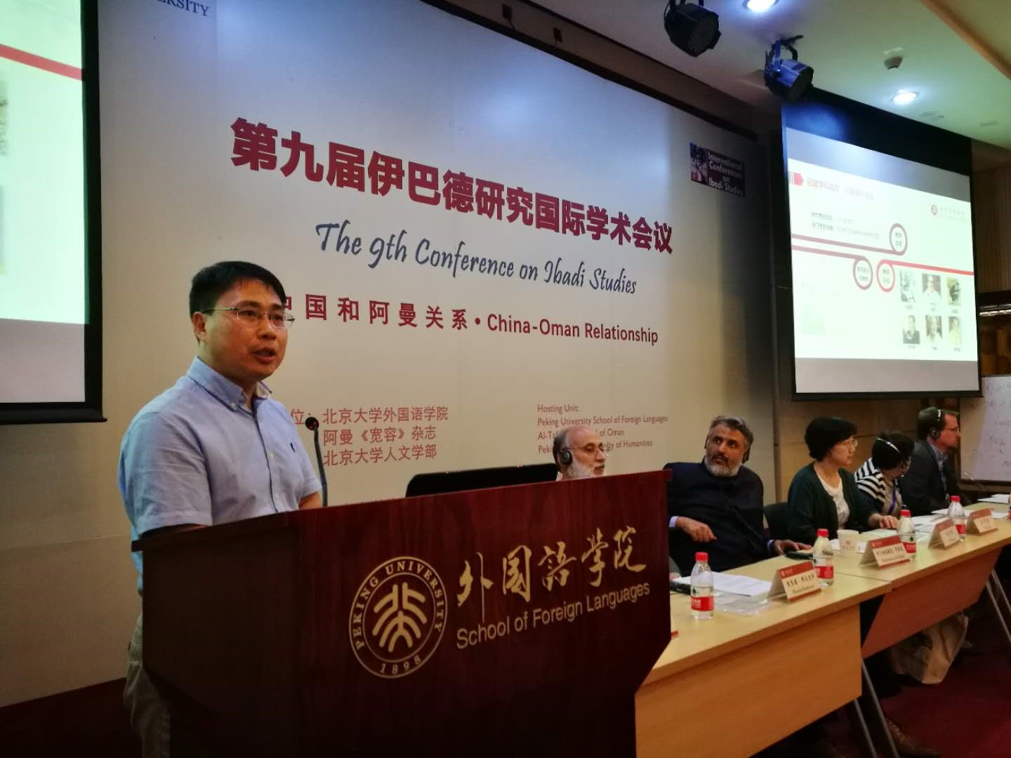 2018年9月17日上午,第九届伊巴德研究国际学术会议开幕式在北京大学英杰交流中心阳光厅成功举行。北京大学副校长王博教授,阿曼著名学者阿卜杜拉·萨利米博士(Dr. Abdulla Mohamed Al-Salimi),外交部前副部长杨福昌,中国前中东问题特使吴思科,中国伊斯兰教协会副会长金汝彬,全国对外友协亚非部三处处长张荣,中国前驻阿曼大使赵学昌、邓绍勤等国内嘉宾和阿曼驻华大使阿卜杜拉·萨阿迪,卡塔尔驻华大使苏尔坦·曼苏里,阿联酋驻华大使阿里·扎希,阿尔及利亚驻华大使艾哈桑·布利法,巴林驻华大使安瓦尔·阿卜杜拉,科威特驻华使馆参赞阿迪尔·萨拉哈特等外国使节参加了开幕式,来自于北京大学、对外经济贸易大学、中国人民大学、北京外国语大学、北京语言大学、中国社会科学院、中国现代国际关系研究院、中国阿拉伯友好协会、中国伊斯兰教协会等高校和相关机构以及来自于阿曼、阿联酋、阿尔及利亚、摩洛哥、突尼斯、日本、英国、美国、希腊、意大利、德国、加拿大等国的中外学者、专家近百人参加了开幕式。开幕式由北京大学阿拉伯语系主任林丰民教授主持。