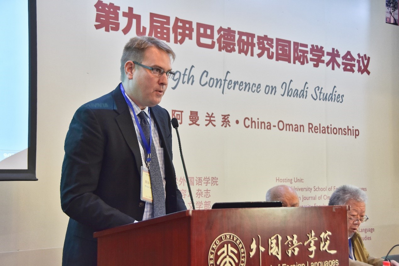 9月18日下午会议的第一时段以“中国、阿曼与世界(三)”为议题,由亚当·盖瑟教授主持。加拿大达尔豪斯大学历史系副教授艾玛尔·加扎尔以“教令、诗歌与谜语:17世纪中国伊巴德穆斯林”为题进行演讲,通过讲述不同信仰、不同民族的男女通婚后出现的种种怪诞现象,揭示了17世纪在中国乃至世界出现的不同文化、不同宗教之间的冲突。北京大学哲学系沙宗平教授以“2007-2016中国和阿曼友好关系一瞥”为题进行演讲,分析了中国和阿曼在科技互动、政治互访、经济互通等领域实现的具有建设性的友好合作。意大利圣心天主教大学历史系教授比阿特丽斯·尼科利尼以“瓜达尔:阿曼苏丹的飞地及其与亚洲的联系”为题发表演讲,指出瓜达尔港对于“中巴经济走廊”的建设有不可替代的意义,在历史上,它先后成为多个国家在重要飞地,将对亚洲未来的发展有深刻的意义。