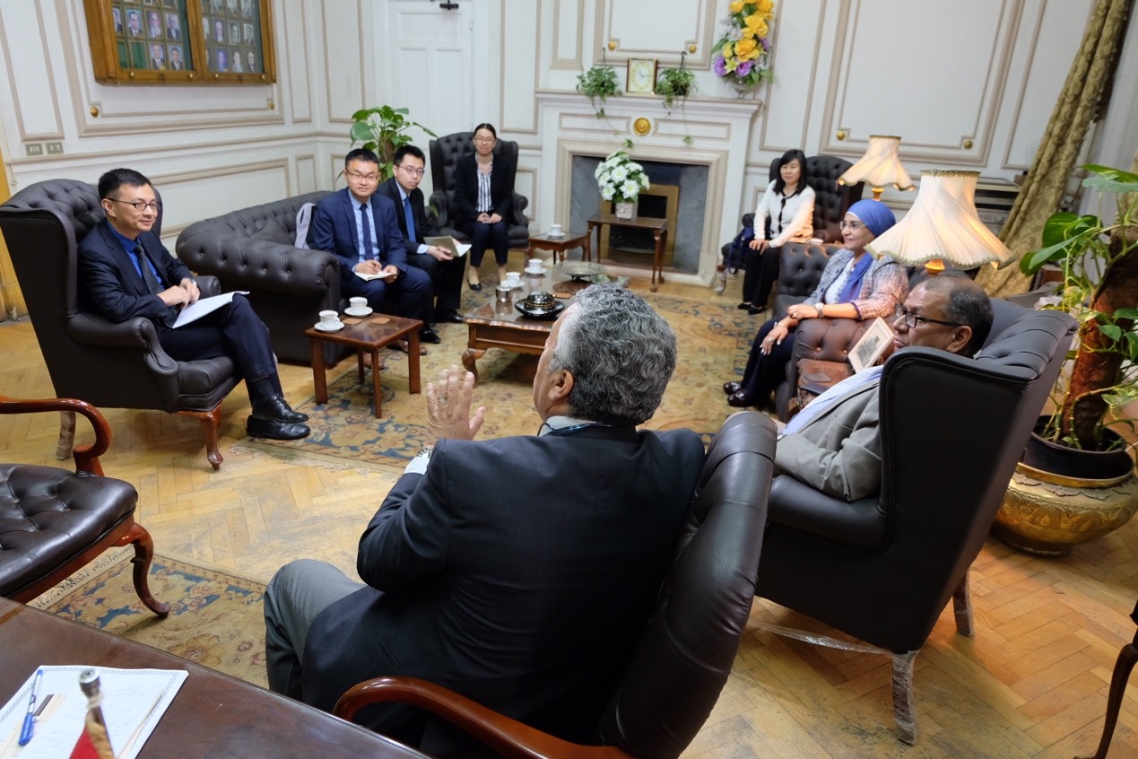 团队第二站参访了开罗大学人文学院。学院院长艾哈迈德•沙尔比尼(Ahmed El-Sherbini)和中文系系主任、孔子学院阿方院长李哈布(Rehab)接见了团队师生。双方表示愿意在既有的合作基础上,发挥各自的语言及学科优势,进一步扩展开罗大学人文学院和B体育平台间的学术合作与人员交流。