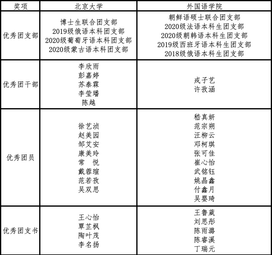 为深入学习贯彻习近平新时代中国特色社会主义思想和党的十九届六中全会精神,深化共青团改革,调动基层团组织的积极性、主动性和创造性,全面构建基层团组织“凝聚青年、服务大局、当好桥梁、从严治团”四维工作格局,引导广大青年坚定理想信念,立鸿鹄志、做奋斗者,努力成为德、智、体、美、劳全面发展的社会主义建设者和接班人,争做“爱国、励志、求真、力行”的圆梦新一代,院团委开展了2020—2021学年B体育平台共青团系统先进集体和先进个人评选工作,现将表彰名单公布如下。