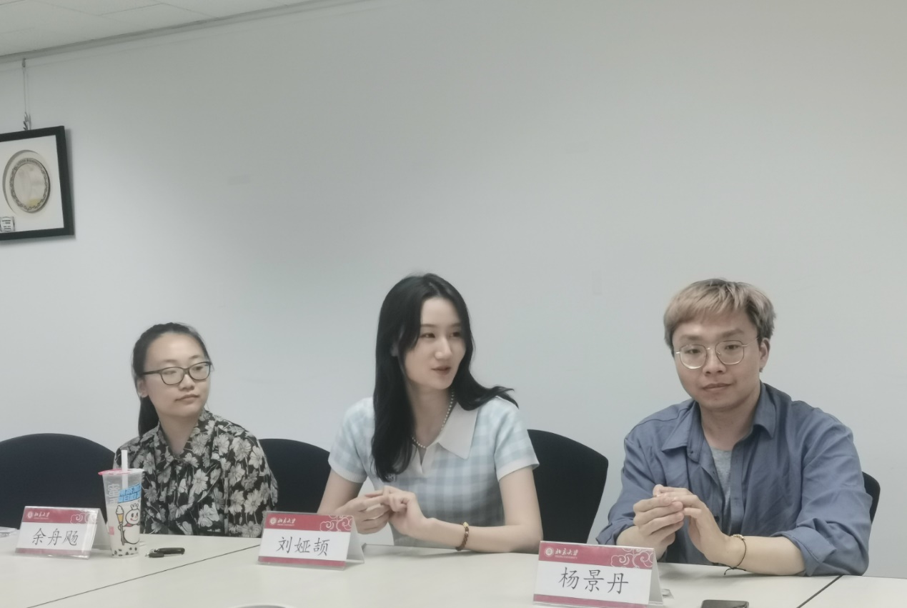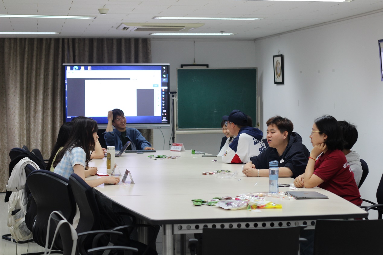 之后,参会人员分为4个小组,分别在401、402两个会场,以不同的形式进行了充分的交流。在线下的交流中,王嘉璐和吕润洋分享了语言学习、本科生科研、双学位与保研升学等话题。杨景丹与梁国铃细致介绍了赴德国交换或深造的准备流程与注意事项。刘娅颉、路畅和余舟飏则分享了德语专业应用前景、寻找实习和兼职以及求职经验和心态调整等相关话题。线下交流结束后,全体与会成员与2021届毕业生高震宇和2022届毕业生叶瑞麒以线上会议的方式进行了交流。两位学长尽管身在外地,但仍心系燕园,积极回应了同学们的提问,从亲身经历出发介绍体制内外的就业体验。