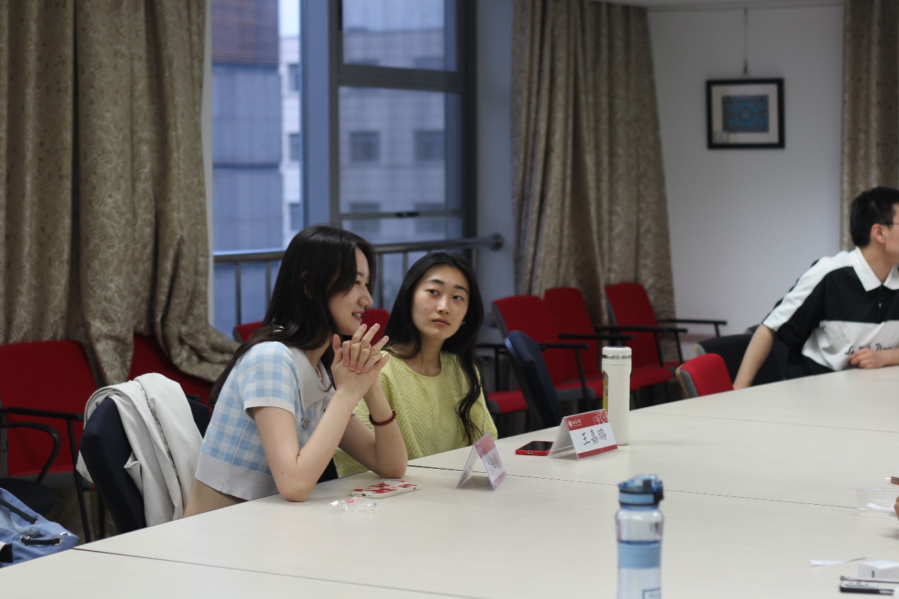 活动流程包括线下交流和线上交流两个环节,交流内容共分为学习方法、升学进修、出国规划、实习就业四个主题。2022届毕业生王嘉璐、2021届毕业生刘娅颉、2020级硕士研究生杨景丹、2020级本科生梁国铃、2022届毕业生余舟飏、2022届毕业生路畅等六名嘉宾分别做了简短的自我介绍。
