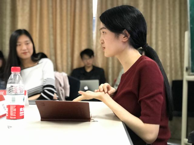 接着杨笛回顾和介绍了自己的选调生考试经历和入职重庆市渝中区后的工作情况。她从择业原因、工作内容、心路历程等多个方面讲述了自己的选调经历。杨笛表示,自己当初做选调生是综合考量了家庭、理想等综合因素之后做出的慎重决定。她指出,就业是大学生踏入社会的第一个难关,不仅个人要有明确的职业目标,还需考虑家人期望和社会认可,是一个双向选择的过程。接着她介绍了自己作为基层选调生的工作内容、工作强度和发展前景。她表示基层公务员的工作虽然较为繁重,却是提升办事能力、结识优秀工作伙伴、全心全意为人民服务的绝佳平台。她强调,无论在哪个岗位上工作,都应从自己的实际情况出发,牢记初心,切莫攀比,适合自己的才是最好的。最后,杨笛以攀登珠峰为喻,鼓励同学们不要惧怕走弯路或者暂时的后退,因为这都是登山过程中不可避免的,也是登山的乐趣所在,不管是前进还是后退,对我们的人生来说都有意义。