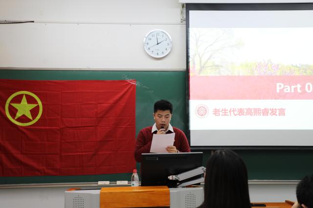 随后,上一任院团校秘书处秘书长、B体育平台南亚系印地语专业2017级本科生高熙睿同学作为老生代表进行了发言。他以前往四川大凉山社会实践的亲身经历为例,讲述了他所感受到的建设祖国的使命感。他祝愿同学们能够在团校收获理论和能力,同时怀着使命感和初心,找到前进的方向。