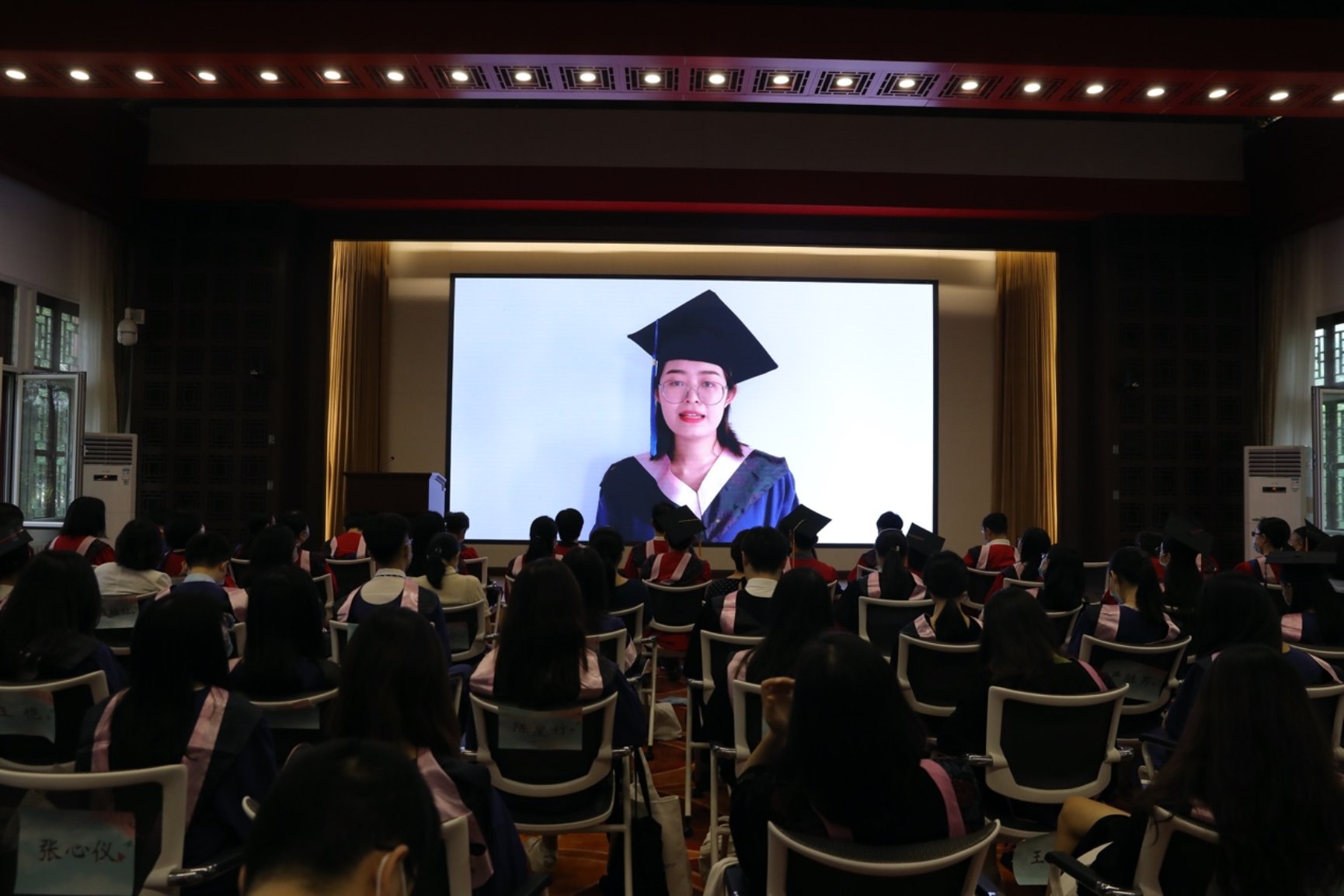 院党委书记李淑静以视频连线的方式宣读2020年优秀毕业生和优秀共产党员表彰决定,希望受表彰同学在实践磨砺、学用相长中练就本领、增长才干,不负人民期待、不负青春韶华。鼓励全体毕业生以受表彰的毕业生为榜样,到党和人民最需要的地方去,把爱国热情转化为报国之志,用奋斗去定义人生的价值。