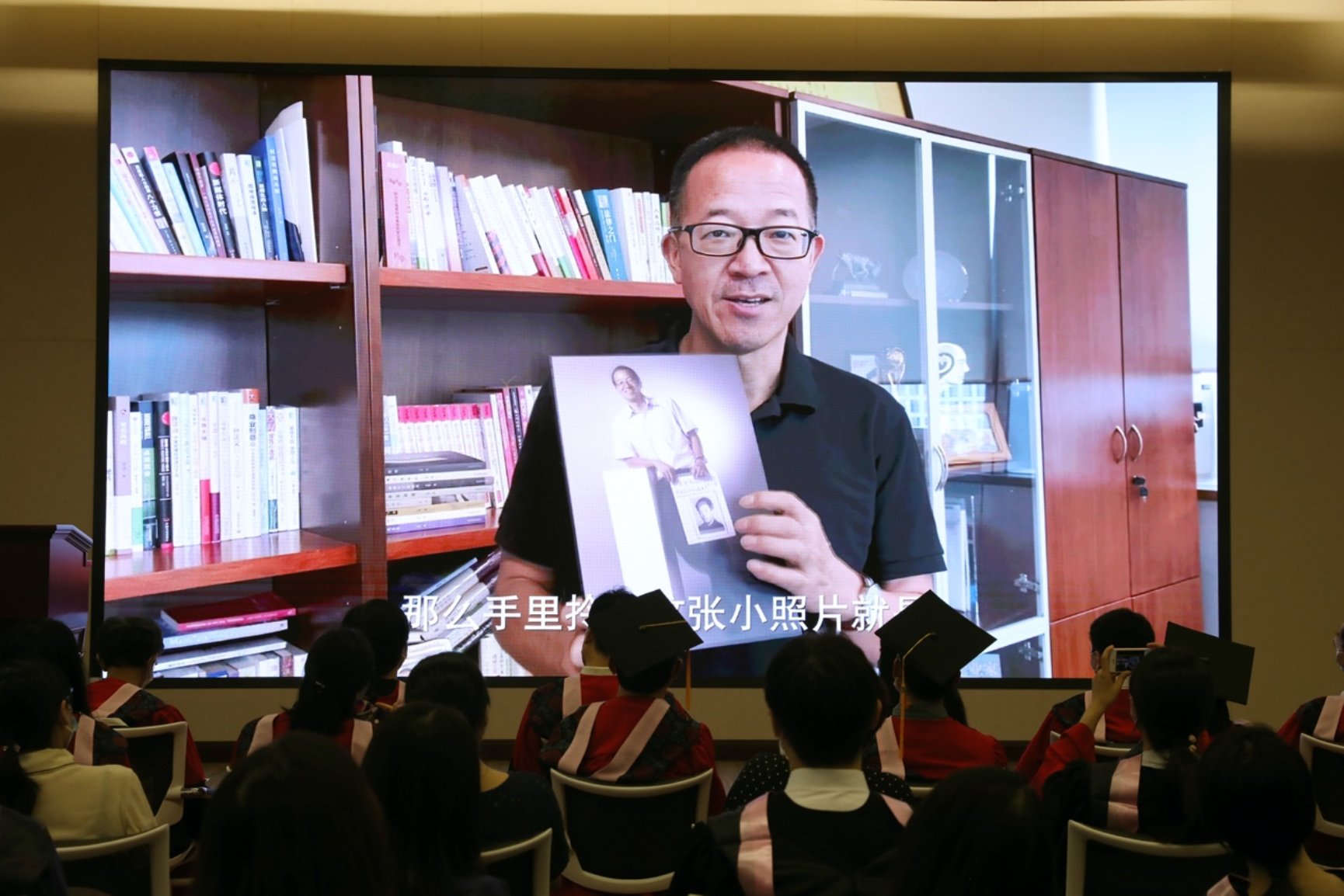 随后,1980级西语系校友、新东方教育集团董事长俞敏洪通过视频的方式为毕业生们带来寄语,他深情回顾了自己在北大的求学历程,与毕业生们分享了北大及老师、同窗带给自己的帮助与温暖。作为学长,俞敏洪向毕业生致以“面向现实,守护理想”的嘱托。