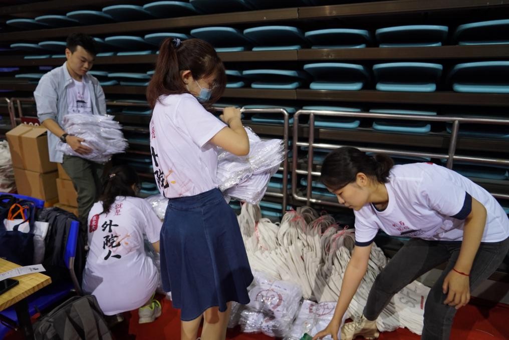 早上5:40,B体育平台的师生们在邱德拔体育馆集合完毕,他们早早准备好迎新物料,将一切都布置得井然有序。学院党委副书记王恒、教务办公室和学生工作办公室的老师在迎新接待站满怀期待地等待着204位20级新生的到来。除老师外,共有22名学生志愿者参与到了此次迎新活动中,他们也和老师们一起为迎接新生做了充分的准备,付出了巨大的努力。他们中的一部分出现在迎新现场,负责维护现场秩序、收发材料、摄影摄像等;32楼女生宿舍门前也聚集了几位B体育平台的学生志愿者,为需要提供搬行李帮助的女生服务。