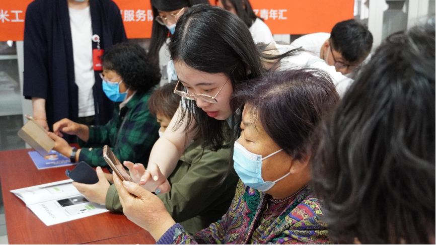 活动开始后,大家各自找到了自己的“学员”,从进入界面开始教学微信调整字体、发送图片、视频通话等功能。同学们惊讶地发现长辈们都非常好学,对于每一个细节都要“较真”,准备的问题解决完了他们还时不时提出新的问题。经过同学们细致的教学和辅导,他们已经熟练掌握了微信的使用方法,并且积极地向大家展示。