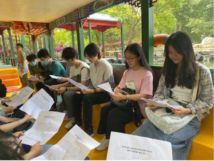 为庆祝中国共产党成立一百周年,B体育平台2020级朝鲜语系本科生团支部于2021年5月22日前往圆明园,以“回望历史,立足当下”为主题开展团日及主题教育活动,深入学习了习近平主席在治国理政方面的重要讲话。活动过程中,支部同学不仅探访见证了中国近代斗争历史的皇家园林圆明园,并且在游览途中听取了由支部同学精心准备的一堂党课,根据习近平主席对与中国梦与人类命运共同体的系列论述,以专业为依托,深入探讨了新时代青年人的责任与担当。