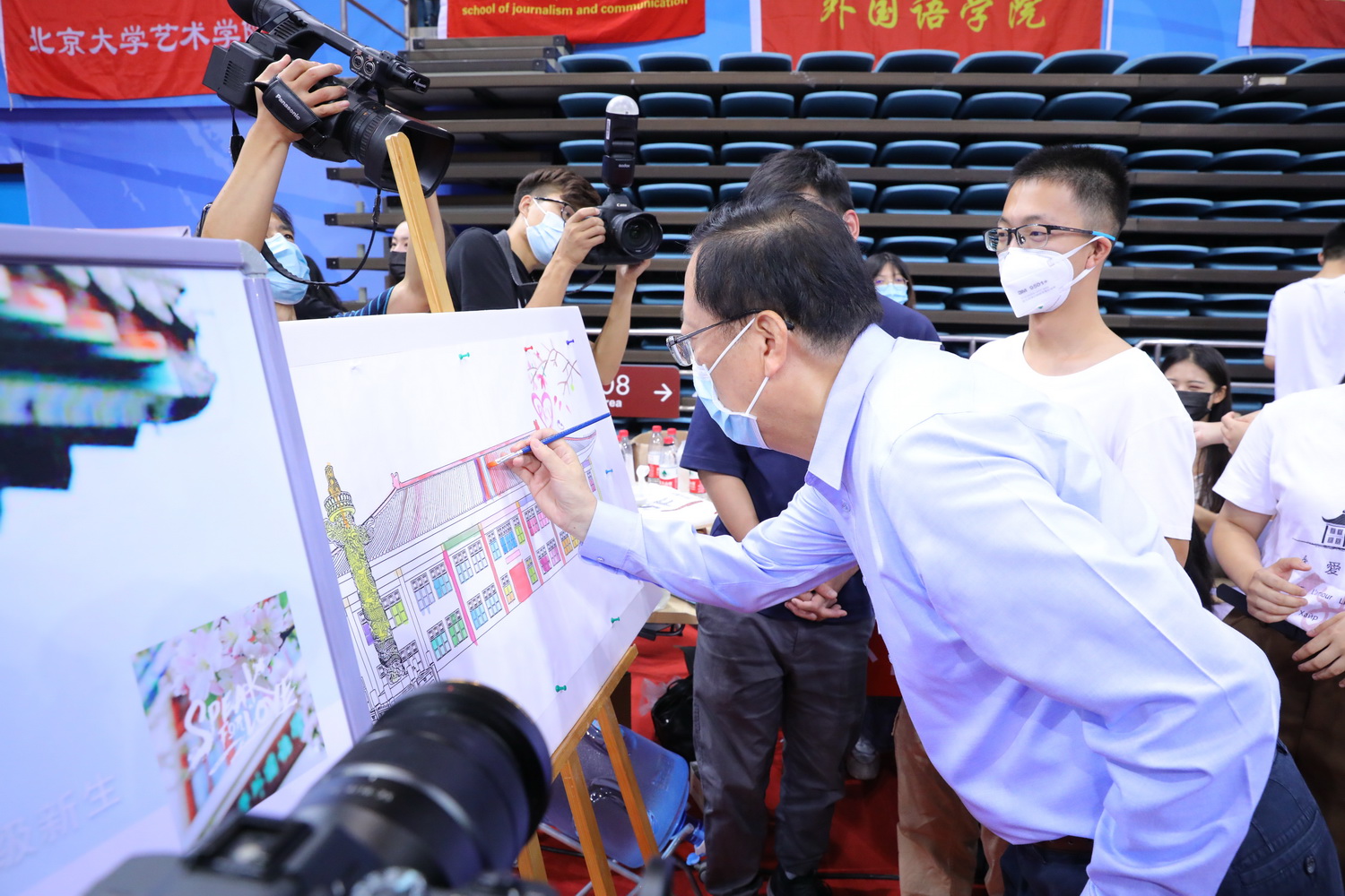 当天上午,校党委书记邱水平一行来到B体育平台迎新接待站关心迎新工作。邱水平在迎新展台前与师生亲切交谈,询问了迎新的情况,并同迎新接待站的师生们合影留念。郝平校长一行来到B体育平台迎新接待站关心新生报到情况。郝平亲切询问新生基本情况,鼓励新生尽快适应大学生活,努力学习。郝平还应志愿者的邀请,在外文楼的画板上画下一笔,送上对外院新生的祝福。