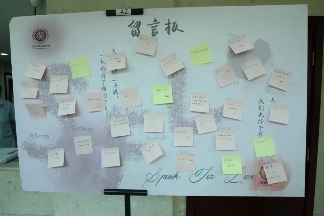 虽然留言板的语言和文字各不相同,但是一笔一画都彰显着研究生新生优秀的外语专业素养和情怀,也充满着初入燕园时对即将开启新学期的憧憬。