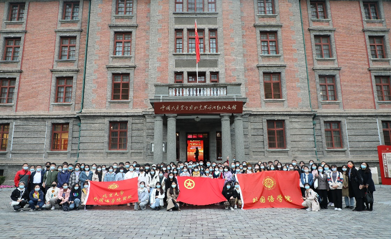 当天下午,全体团校同学集体前往北大红楼开展团校第一次实践活动。中国人民抗日战争纪念馆办公室和对外交流部联合党支部成员,院党委副书记王恒、团委书记卢敏、团委副书记于丹、2021级辅导员杨轶佳一同参加活动。活动受到中国共产党早期北京革命活动纪念馆(北大红楼)的大力支持,纪念馆常务副馆长杨家毅、副馆长黄春锋与师生亲切交流并合影留念。