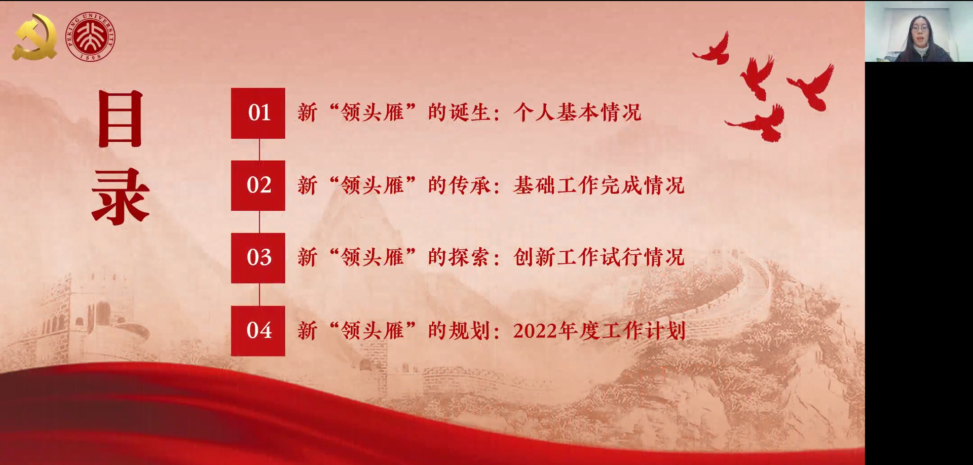 此次交流会采取党支书汇报展示、老师考评与党支书互评的方式开展,评价标准涵盖“党性修养”“基础工作”“创新工作”“工作计划”四个维度。会上,18名党支书依次介绍了各支部在2021年度开展工作的具体情况,并对2022年度工作计划进行了展望。在每人5分钟的汇报交流中,各支部紧密结合不同专业和年级特点展开论述,充分表现出各支部扎实的基础党建工作、丰富的建党百年主题党团日活动、创新的理论学习与实践志愿途径,以及深刻的工作总结与反思。在对未来的工作计划方面,各支部提前规划、精心筹备,在相互学习交流中备受启发。