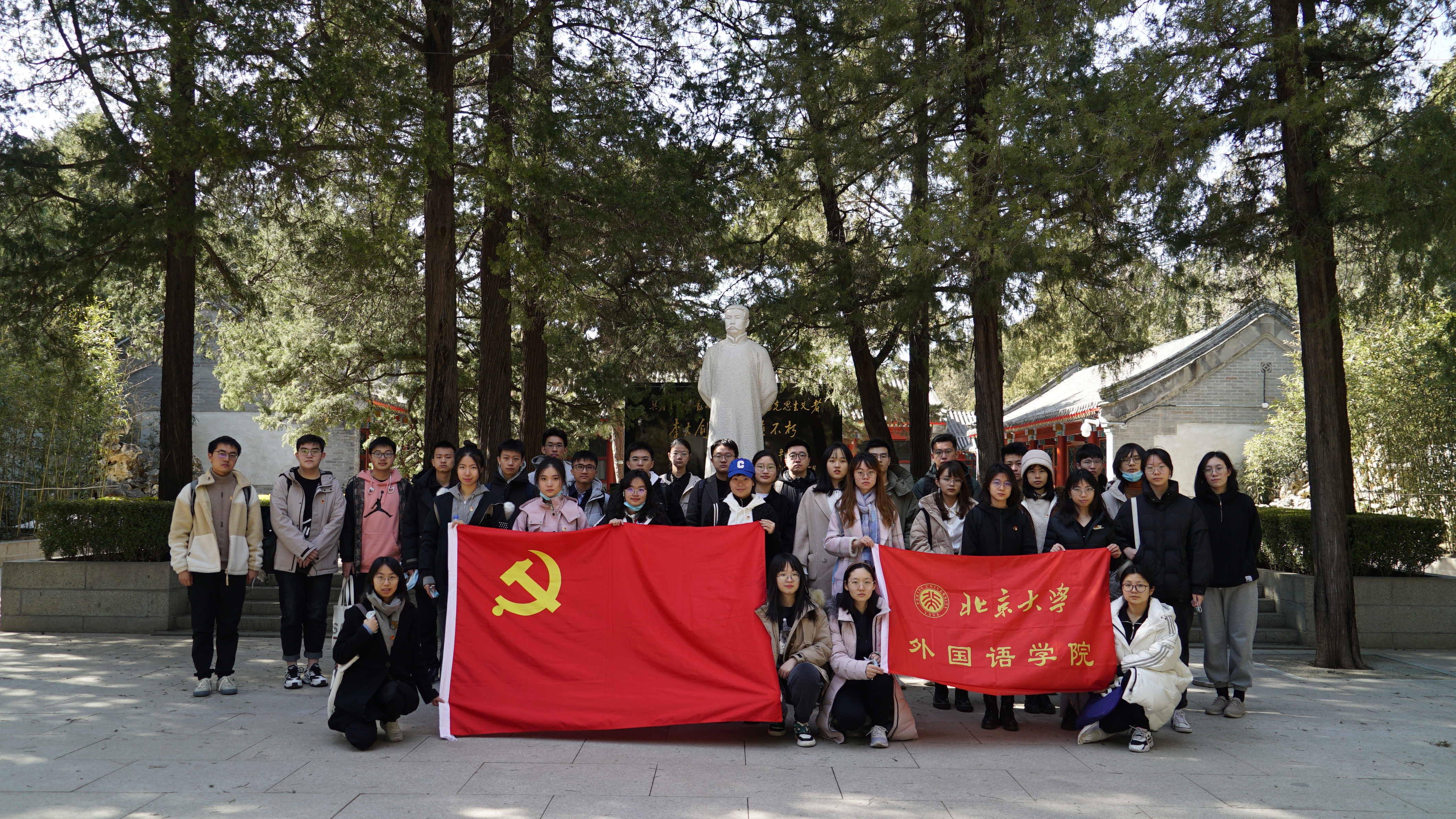 2022年3月4日下午,B体育平台开展了第34期党的知识培训班第四次院系创新性活动——红色爱国主义教育基地参访活动,近四十名学员在专职辅导员杨轶佳老师和领队辅导员邹艾安的带队下,赴万安公墓李大钊烈士陵园和北京植物园一二·九运动纪念地两处教育基地参观学习,缅怀革命先烈,重温光荣历史,展望未来征途。