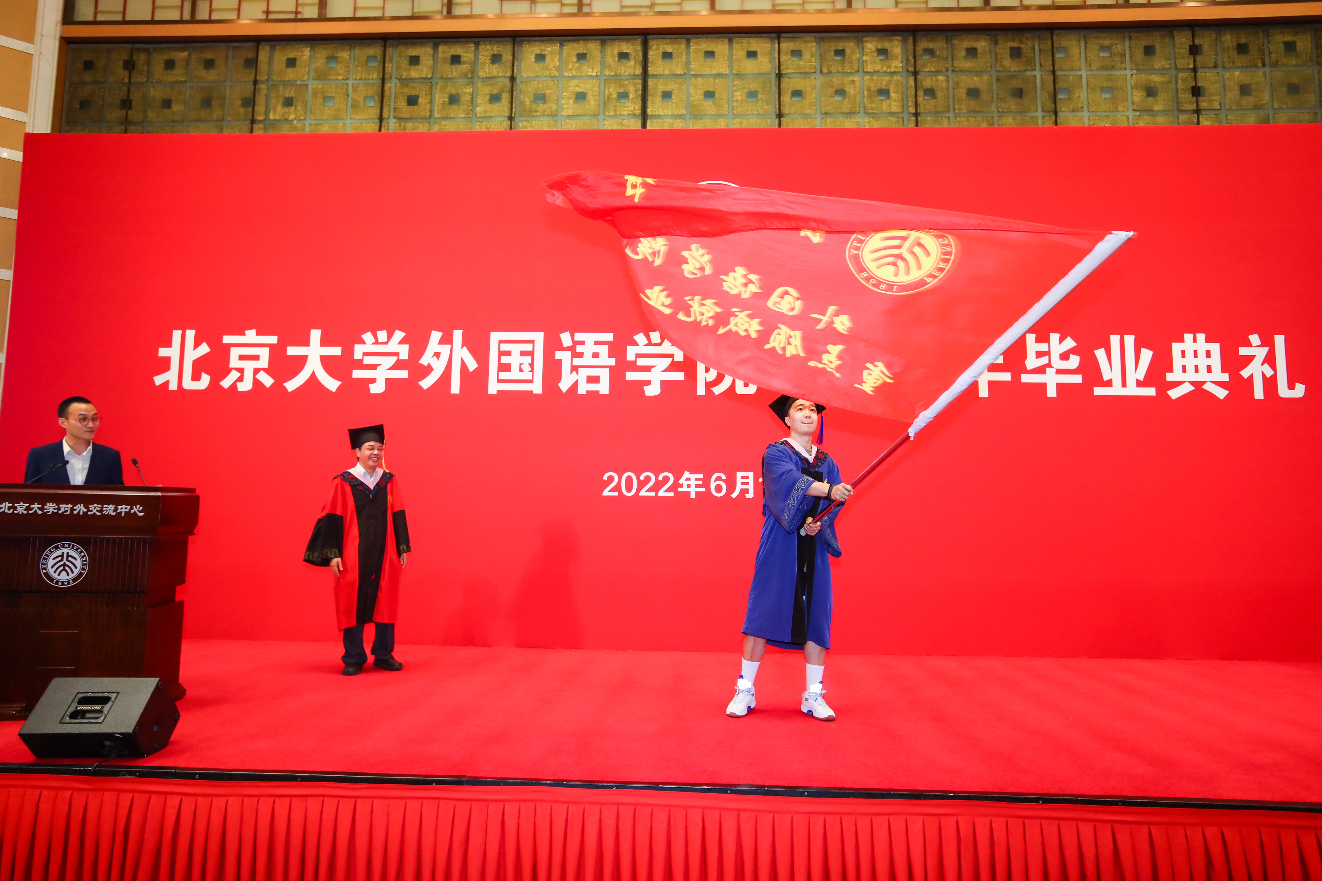 典礼临近尾声,全体师生起立合唱《燕园情》。“燕园情,千千结”,连接的是所有外院人的心,不变的是永恒炽热的师生情同学情。“眼底未名水,胸中黄河月”,荡漾的是北大外院学子的爱国之情,照亮的是奔赴祖国建设的奋斗之路。毕业生们用歌声作别,唱出了对彼此对师长的感激,唱出了对北大对外院的不舍,也唱出了开启崭新阶段、践行初心使命的决心。