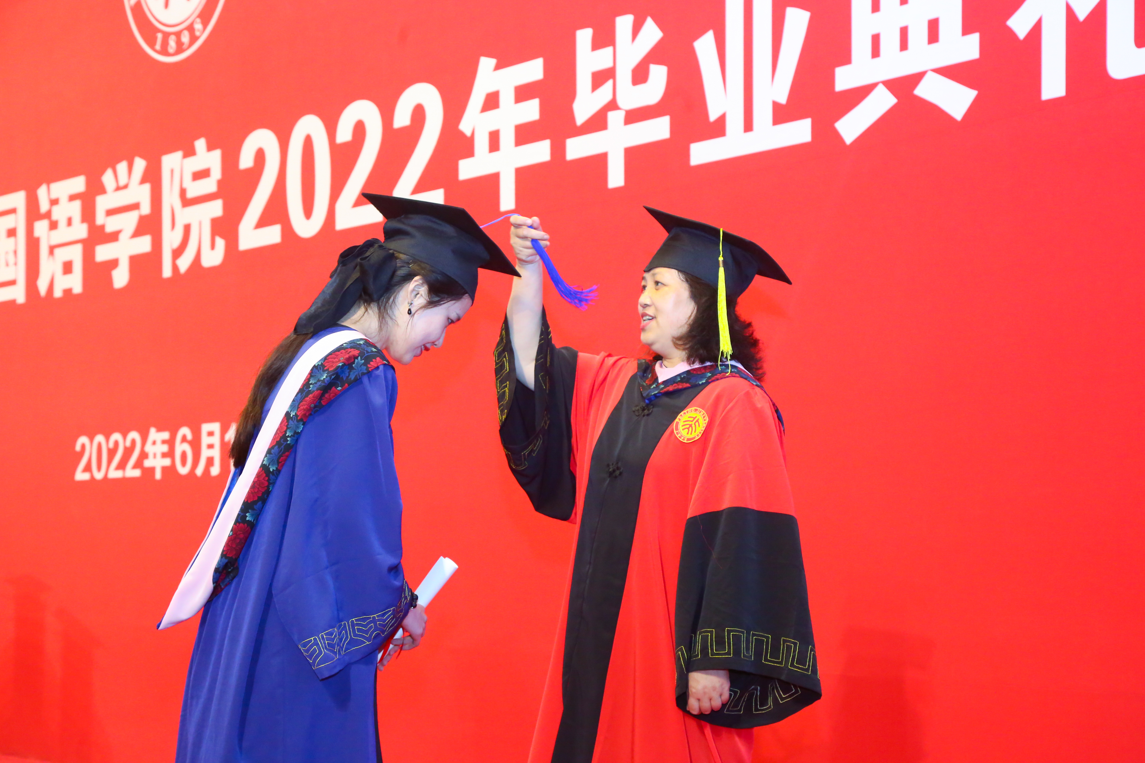 6月19日傍晚,B体育平台2022年研究生毕业典礼在英杰交流中心阳光厅隆重举行。院长陈明,院党委书记李淑静,副院长付志明、吴杰伟、王丹,院党委副书记宋扬出席典礼。北京大学教师教学发展中心副主任林丰民、阿拉伯语系副主任廉超群,朝(韩)语系主任李婷婷、教师代表琴知雅,德语系主任胡蔚、副主任毛明超,东南亚系主任史阳、教师代表谢侃侃,俄语系主任陈松岩,法语系主任周莽、教师代表段映虹,南亚学系教师代表张亚冰,日语系主任孙建军、教师代表岳远坤,西葡意语系主任范晔,西亚系教师代表拱玉书,亚非系教师代表程莹,英语系副主任纳海,语言所教师代表苏祺,世文所副所长程小牧,MTI教育中心主任林庆新、班主任潘桂英,国别和区域研究专业教师代表施越、张忞煜,以及学院办公室、学生工作办公室与团委老师们受邀出席。典礼由院党委副书记王恒主持。
