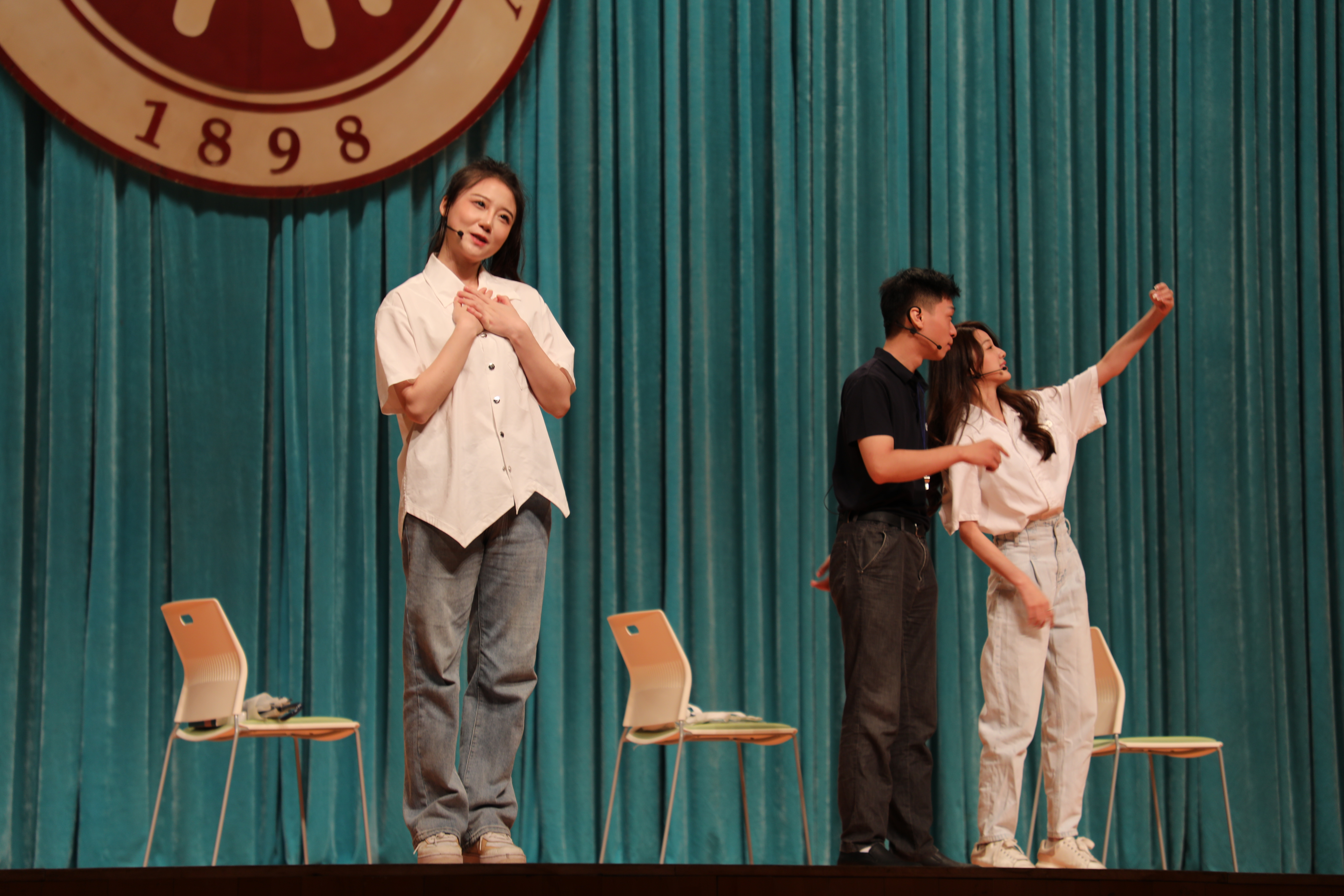 为了将戏剧的美更直观地展现,来自中央戏剧学院戏剧教育系的学生林子涵、魏嘉丽和梁轲涵为同学们带来叙述式情景表演“我和我的老师”。表演聚焦教育教学,试图探讨什么样的老师是好的老师,什么样的教育是好的教育。现场的同学们沉浸于表演,深受感动的同时也深受启发。