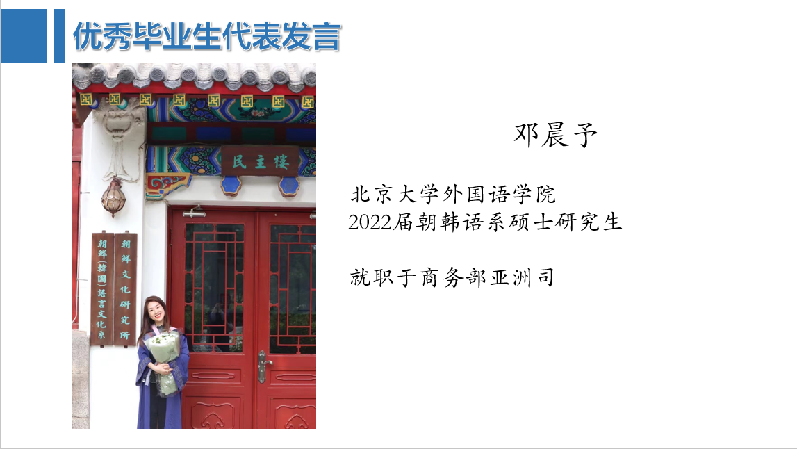 邓晨予从备考经验方面和同学们分享了个人的经历,强调了保持语言训练的重要性。两位优秀毕业生代表给同学们带来了择业偏好和岗位意愿上的新启发。