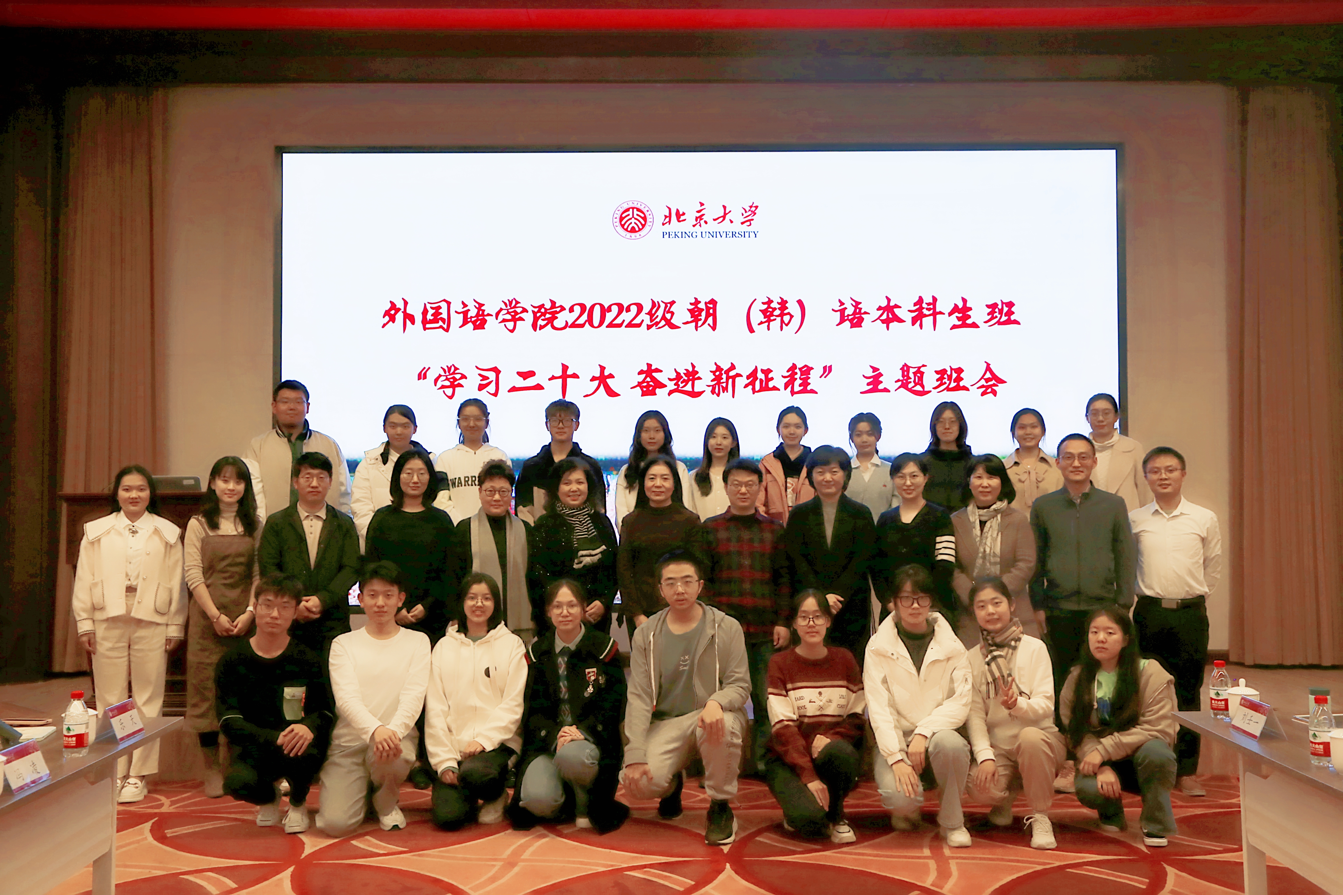 11月5日下午,B体育平台2022级朝(韩)语本科生班在民主楼208会议室召开“学习二十大,奋进新征程”主题班会。北京大学党委副书记、副校长,2022级朝(韩)语本科生班第二班主任宁琦,B体育平台党委书记李淑静,马克思主义学院党的建设研究所所长王久高,B体育平台副院长王丹,B体育平台党委副书记王恒,朝(韩)语系主任李婷婷,朝(韩)语系教师代表琴知雅、文丽华、宋文志出席班会。班会由朝(韩)语系副主任、班主任丁一主持。