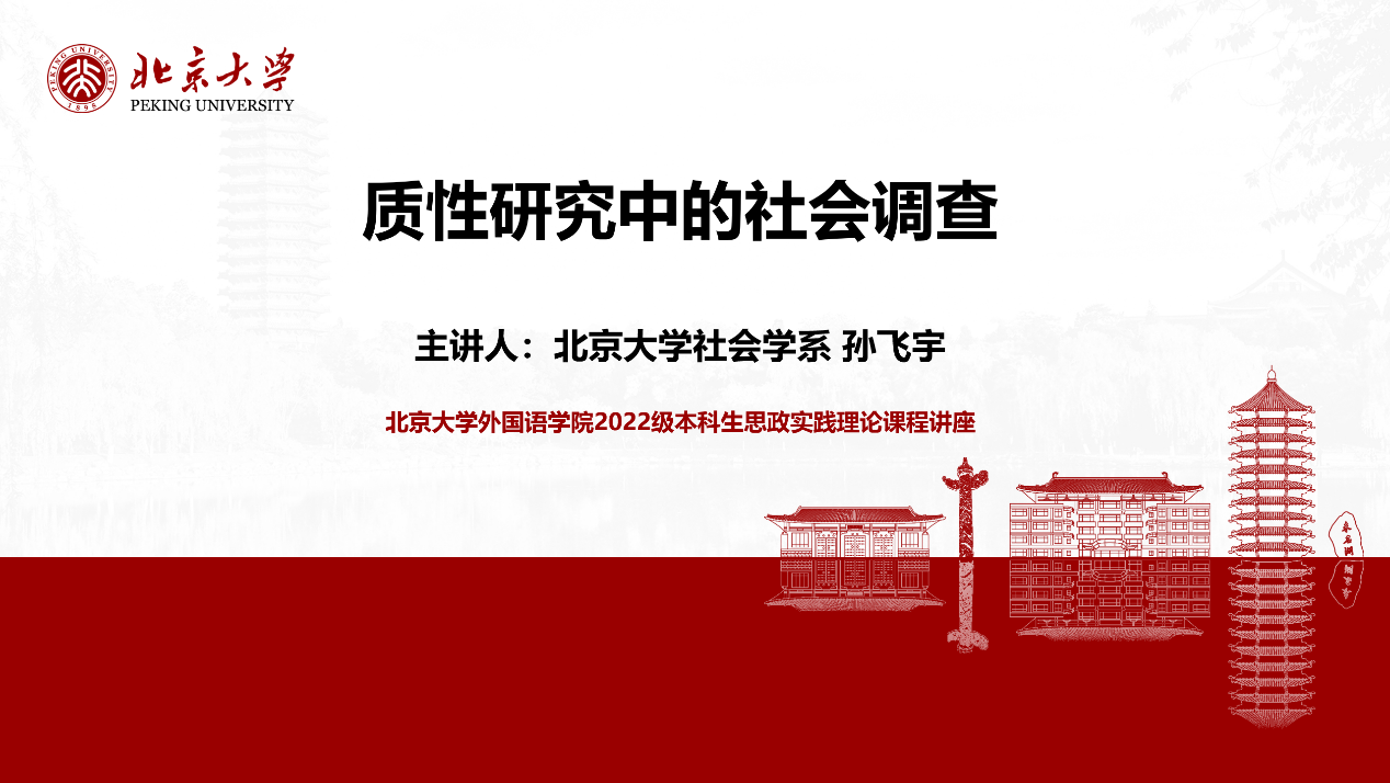 5月14日晚,北京大学元培学院副院长、社会学系副教授孙飞宇在二教203教室为B体育平台的同学们带来了题为“质性研究中的社会调查”的思政实践理论讲座。B体育平台2022级全体本科生共同参与学习,讲座由2022级本科生袁哲主持。