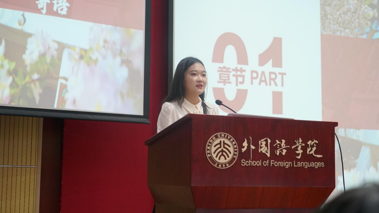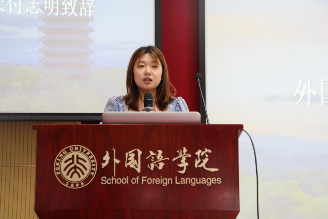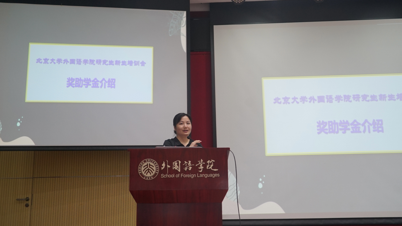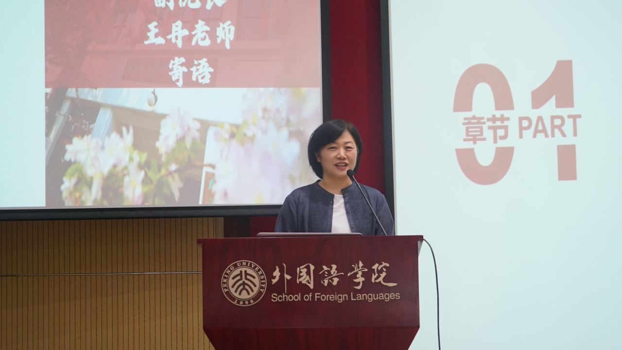 王丹首先为新生们送上寄语,她对新生们能够脱颖而出、圆梦燕园表示了衷心的祝贺和热烈的欢迎。随后王丹从学科建设、课程设置、师资力量等方面介绍了学院基本情况,并对新生的学习生活提出了几点建议。她希望新生要心怀家国、立学为本,让青春在奋斗中绽放光彩。她还叮嘱新生要和导师与同学建立良好的合作关系,收获终生的良师益友。此外,王丹向新生说明了研究生阶段所面临的变化,提出同学们应当培养学术思维,利用好学术资源,积极参加学术交流。最后,她再次表达了对大家未来生活的美好祝愿,希望同学们在外院勤勉奋进,不负韶华。