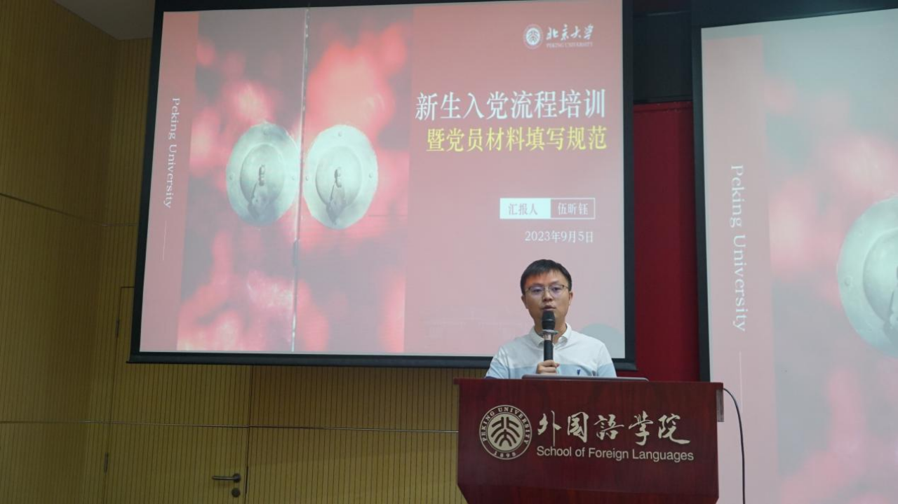 学院副院长付志明老师为新生见面会致辞。他首先对全体新生表示祝贺,欢迎大家来到北京大学,成为一名外院人,正式开始大学生活,他对新生们提出了几点期望。首先同学们要做好自己的大学生涯规划,平衡学习与生活,找到属于自己的未来发展方向。其次,要认真遵守校规校纪,规范自己的言行,牢记北大人的责任担当。再次,作为B体育平台的学生,应认真学习专业知识,苦练语言本领,讲好外语,向世界传递中国声音。最后,他表达了对新生同学们燕园生活的美好祝愿。