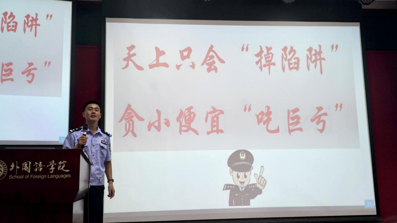 为加强新生安全意识,9月5日、6日上午,学院邀请燕园派出所指导员曹爱利警官为分别为本科生、研究生进行防诈骗知识宣讲。曹爱利警官从鲜活案例出发,生动形象地向新生讲解了各类诈骗的常见手段和防范措施,并提醒新生提高防范意识,保护好自己的财产安全。