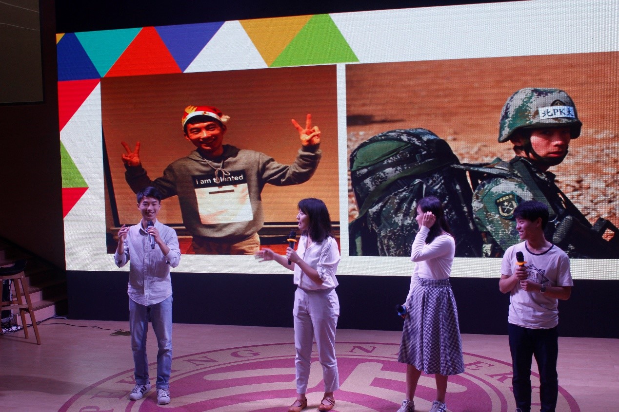 开场徐稚芳老师与王弘毅同学中俄双语诵读普希金名篇《致凯恩》。“外·四海一心”板块,胡壮麟老师、孙亦丽老师和张义荀同学中英对诵唐诗《寒食》《春雨》《章台夜思》;2014级菲律宾语专业尹子尤同学演唱原创歌曲《语路》,献礼外院文化节,万语千言,融进歌声里;2014级泰语专业本科班荣获北京大学“班级五四奖杯”,他们自编自演短剧《毕业班会》,重温充满温情与力量的北大奋斗之旅;来自韩国、俄罗斯、墨西哥、巴基斯坦、埃及的留学生朋友,和中国同学一同中英双语诗诵《明月几时有》,优美的韵律、深邃的意涵、古今中外的互融互通令人动容。