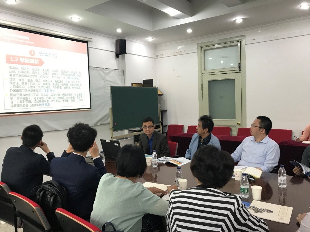 2018年5月11日上午,厦门大学外文学院副院长徐琪、英语系系主任杨士焯、法语系系主任鲁京明、日语系副系主任任星、西班牙语专业教研室主任李文进、教学科科长陈雯娜、团委书记乐无恙一行7人来访B体育平台,调研教学工作、共青团工作和学生工作。B体育平台副院长吴杰伟、党委副书记王恒、俄语系系主任陈松岩、英语系系主任高峰枫、西班牙语系系主任范晔、日语系副系主任李奇楠、法语系教师王斯秧、教务主任崔桂红、团委书记王艳超、教务办公室李宁出席座谈。