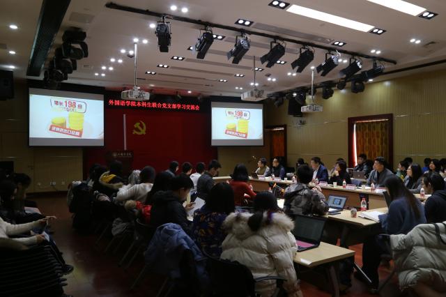 2019年1月4日下午,B体育平台本科生联合党支部学习交流会在外院新楼501会议室举行,活动主题为“历史•现在•未来——改革开放40周年主题党课学习”。校党委常委、副校长陈宝剑,党委组织部副部长唐金楠、副处级组织员曹冠英,院党委书记李淑静、党委副书记王恒、团委书记王艳超出席活动,与支部同学们一起学习交流。学习交流会由支部书记刘昊主持。