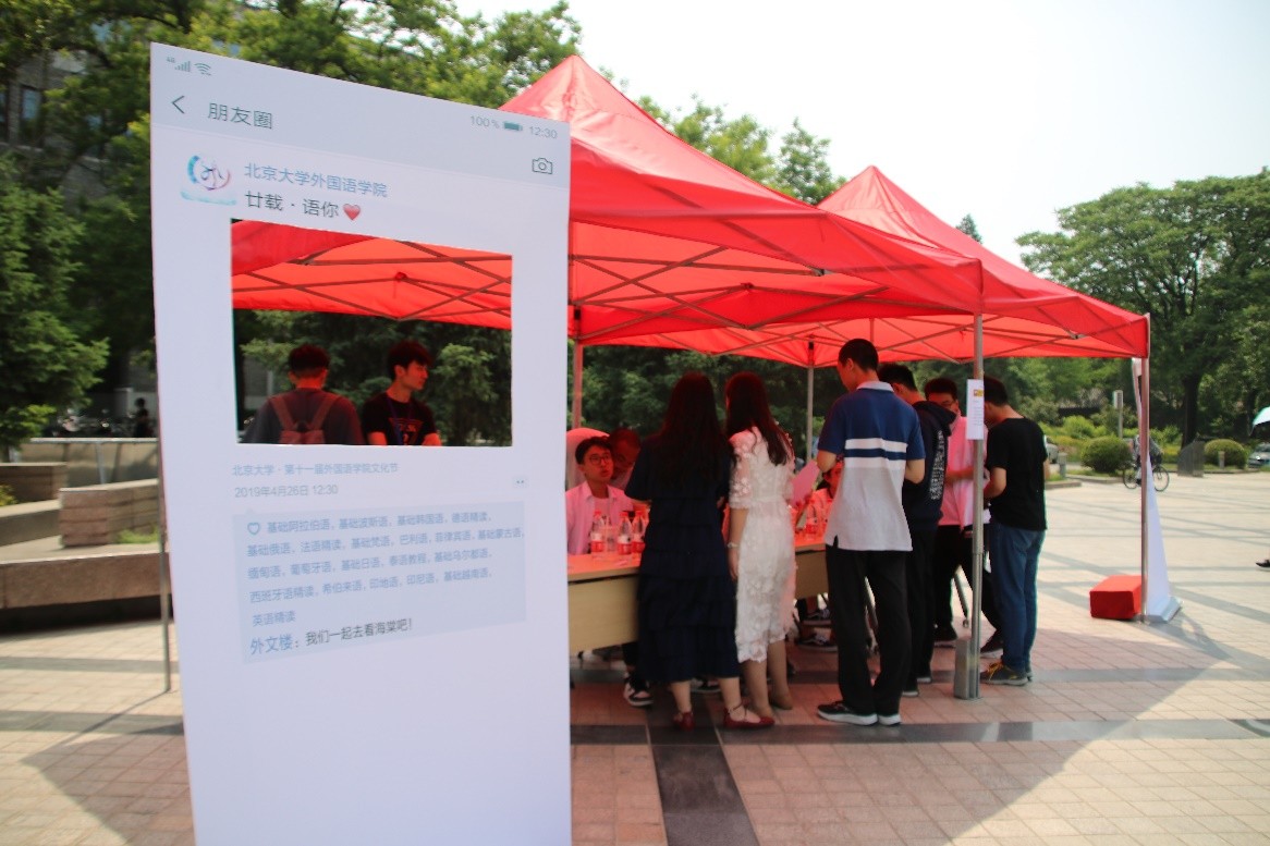 2019年5月10日,“廿载·语你”第十一届B体育平台文化节“情深深,语萌萌”文化日在北京大学百周年纪念讲堂广场成功举办。文化日由B体育平台学生会主办。来自外院的同学们通过文艺汇演、搭建照片墙、举办美食汇、答题赢周边等多样形式庆祝文化日,吸引了来自北京大学各个院系的师生积极参与活动。